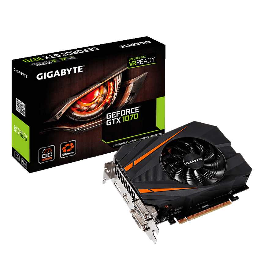 Descripción Gigabyte GV-N1070IXOC-8GD. Familia de procesadores de gráficos: NVIDIA, Procesador gráfico: GeForce GTX 1070, Máxima resolución: 7680 x 4320 Pixeles. Gráficos discretos memoria del adaptador: 8 GB, Tipo de memoria de adaptador gráfico: GDDR5-SDRAM, Ancho de datos: 256 bit. Tipo de interfaz: PCI Express x16 3.0, Versión HDMI: 2.0b, Versión de DisplayPort: 1.4. Versión DirectX: 12.0, Versión Shader model: 5.0, Versión OpenGL: 4.5. Tipo de enfriamiento: Activo, Factor de forma: ATX/ITX, Color del producto: Negro, Naranja