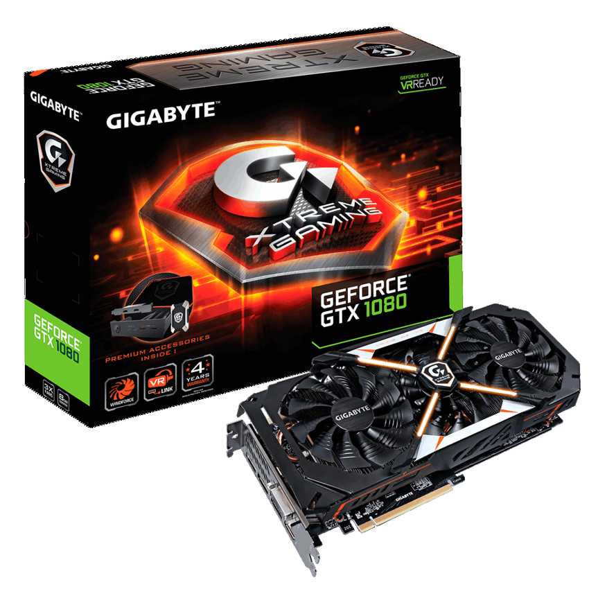 DescripciónGigabyte GF GV-N1080XTREME-8GD-PP PCIE3. Familia de procesadores de gráficos: NVIDIA, Procesador gráfico: GeForce GTX 1080, Máxima resolución: 7680 x 4320 Pixeles. Gráficos discretos memoria del adaptador: 8 GB, Tipo de memoria de adaptador gráfico: GDDR5, Ancho de datos: 256 bit. Tipo de interfaz: PCI Express x16 3.0, Versión HDMI: 2.0b, Versión de DisplayPort: 1.4. Versión DirectX: 12.0, Versión Shader model: 5.0, Versión OpenGL: 4.5. Tipo de enfriamiento: Activo, Factor de forma: ATX, Color del producto: NegroEspecificacionesFamilia de procesadores de gráficos: NVIDIAProcesador gráfico: GeForce GTX 1080Máxima resolución: 7680 x 4320 PixelesCUDA: SiFrecuencia del procesador: 1784 MHzAumento de la velocidad de reloj del procesador: 1936 MHzSoporte para proceso paralelo: 2-Way SLIResolución (máxima digital): 7680 x 4320 PixelesNúcleos CUDA: 2560Gráficos discretos memoria del adaptador: 8 GBTipo de memoria de adaptador gráfico: GDDR5Ancho de datos: 256 bitVelocidad de memoria del reloj: 10400 MHzTipo de interfaz: PCI Express x16 3.0Número de puertos HDMI: 1Cantidad de puertos DVI-D: 1Cantidad de DisplayPorts: 3Versión HDMI: 2.0bVersión de DisplayPort: 1.4Sintonizador de TV integrado: NoPhysX: SiVersión DirectX: 12.0Versión Shader model: 5.0Versión OpenGL: 4.5Alta Definición Total: SiDual Link DVI: SiHDCP: SiNVIDIA G-SYNC: SiNVIDIA GameWorks VR: SiTipo de enfriamiento: ActivoFactor de forma: ATXNúmero de ranuras: 2Color del producto: NegroSuministro de energía al sistema mínimo: 500 WConectores de energia suplementario: 2x 8-pinSistema operativo Windows soportado: SiProfundidad: 5,6 cmAltura: 13,8 cmAncho: 28,9 cm
