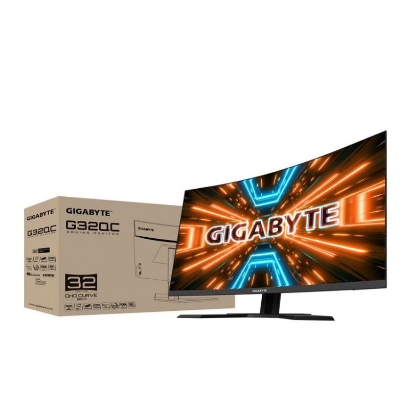 Descripción Gigabyte G32QC. Diagonal de la pantalla: 81,3 cm (32"), Resolución de la pantalla: 2560 x 1440 Pixeles, Tipo HD: Quad HD, Tecnología de visualización: LED, Superficie de la pantalla: Mate, Tiempo de respuesta: 1 ms, Relación de aspecto nativa: 16:9, Ángulo de visión, horizontal: 178°, Ángulo de visión, vertical: 178°. Altavoces incorporados. Conector USB incorporado, Versión de conector USB: 3.2 Gen 1 (3.1 Gen 1). montaje VESA, Ajustes de altura. Color del producto: Negro