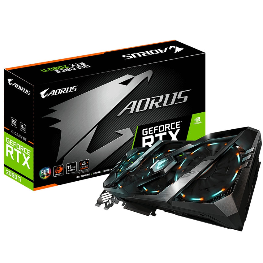Descripción Gigabyte GV-N208TAORUS-11GC. Familia de procesadores de gráficos: NVIDIA, Procesador gráfico: GeForce RTX 2080 Ti, Frecuencia del procesador: 1695 MHz. Capacidad memoria de adaptador gráfico: 11 GB, Tipo de memoria de adaptador gráfico: GDDR6, Ancho de datos: 352 bit, Velocidad de memoria del reloj: 14000 MHz. Máxima resolución: 7680 x 4320 Pixeles. Versión DirectX: 12.0, Versión OpenGL: 4.5. Tipo de interfaz: PCI Express x16 3.0. Tipo de enfriamiento: Activo, Número de ventiladores: 3 Ventilador(es)