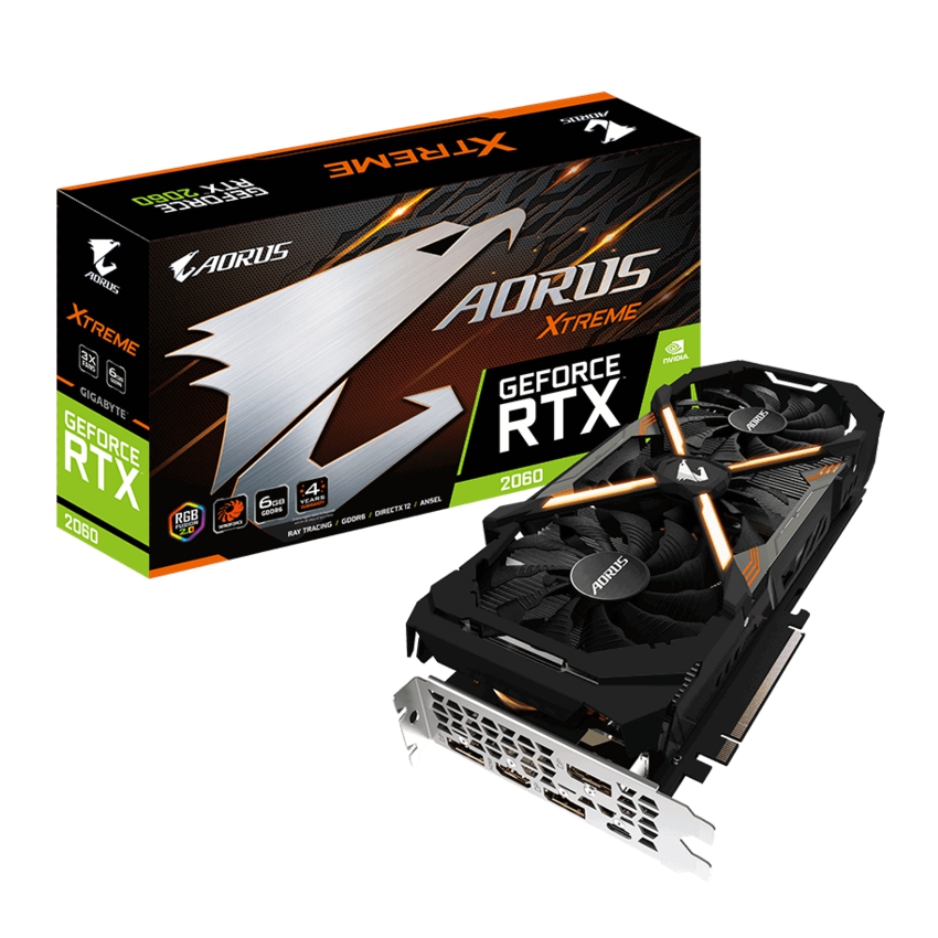 Descripción Gigabyte GV-N2060AORUS X-6GC. Familia de procesadores de gráficos: NVIDIA, Procesador gráfico: GeForce RTX 2060, Frecuencia del procesador: 1845 MHz. Capacidad memoria de adaptador gráfico: 6 GB, Tipo de memoria de adaptador gráfico: GDDR6, Ancho de datos: 192 bit, Velocidad de memoria del reloj: 14140 MHz. Máxima resolución: 7680 x 4320 Pixeles. Versión DirectX: 12.0, Versión OpenGL: 4.5. Tipo de interfaz: PCI Express x16 3.0. Tipo de enfriamiento: Activo, Número de ventiladores: 3 Ventilador(es)