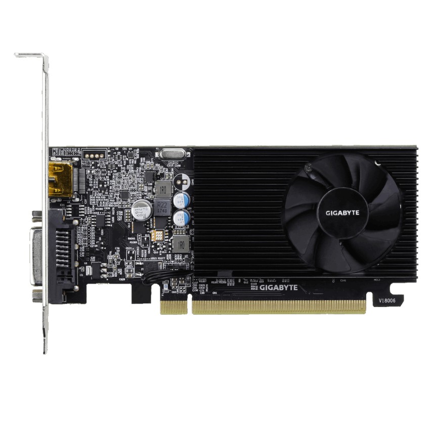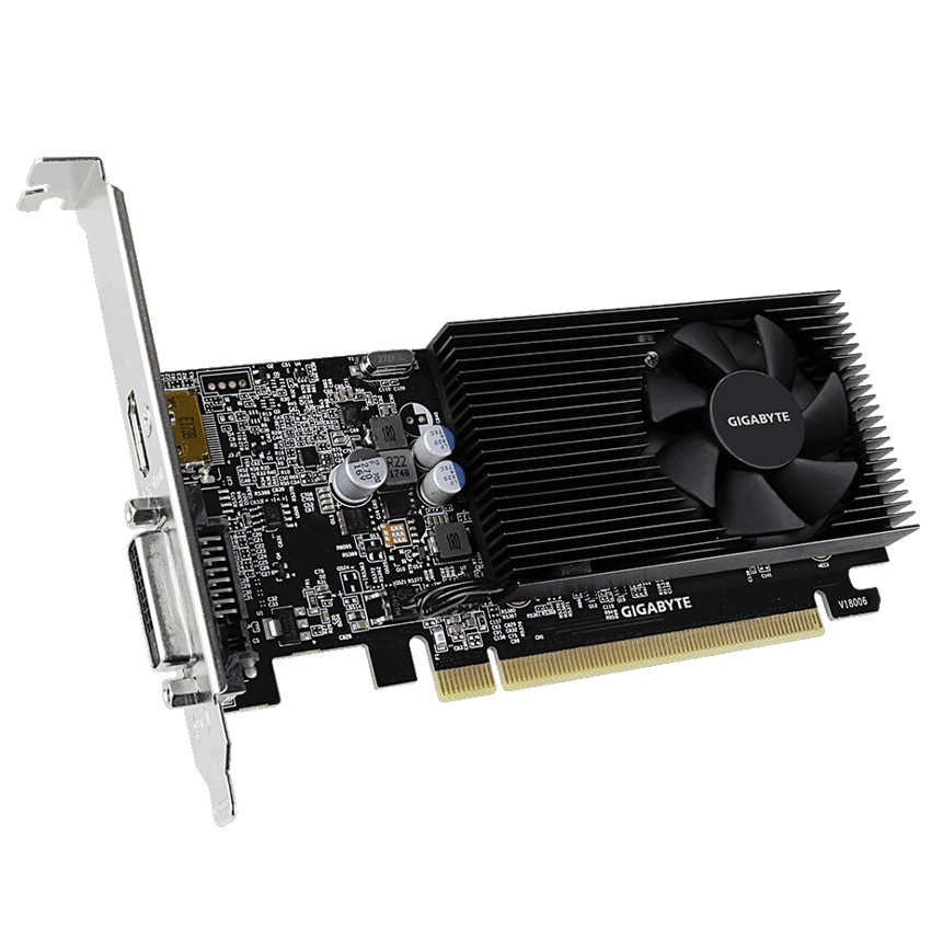 DescripciónGigabyte GV-N1030D4-2GL. Familia de procesadores de gráficos: NVIDIA, Procesador gráfico: GeForce GT 1030, Frecuencia del procesador: 1151 MHz. Capacidad memoria de adaptador gráfico: 2 GB, Tipo de memoria de adaptador gráfico: GDDR4, Ancho de datos: 64 bit, Velocidad de memoria del reloj: 2100 MHz. Máxima resolución: 4096 x 2160 Pixeles. Versión DirectX: 12.0, Versión OpenGL: 4.5, Dual Link DVI. Tipo de interfaz: PCI Express x16 3.0. Tipo de enfriamiento: Activo, Número de ventiladores: 1 Ventilador(es)EspecificacionesFamilia de procesadores de gráficos: NVIDIAProcesador gráfico: GeForce GT 1030Máxima resolución: 4096 x 2160 PixelesCUDA: SiFrecuencia del procesador: 1151 MHzSoporte para proceso paralelo: No compatibleFireStream: NoAumento de la velocidad de reloj del procesador: 1379 MHzProcessor frequency (OC mode): 1177 MHzProcessor boost clock speed (OC mode): 1417 MHzCapacidad memoria de adaptador gráfico: 2 GBTipo de memoria de adaptador gráfico: GDDR4Ancho de datos: 64 bitVelocidad de memoria del reloj: 2100 MHzTipo de interfaz: PCI Express x16 3.0Número de puertos HDMI: 1Cantidad de puertos DVI-D: 1Versión HDMI: 2.0bSintonizador de TV integrado: NoPhysX: SiVersión DirectX: 12.0Versión Shader model: 5.1Versión OpenGL: 4.5HDCP: SiDual Link DVI: SiAlta Definición Total: SiTipo de enfriamiento: ActivoNúmero de ventiladores: 1 Ventilador(es)Factor de forma: LPNúmero de ranuras: 1Color del producto: NegroSuministro de energía al sistema mínimo: 300 WSistema operativo Windows soportado: SiSistema operativo Linux soportado: SiProfundidad: 14,7 mmAltura: 68,9 mmAncho: 149,9 mmManual de usuario: SiControladores incluidos: SiTipo de embalaje: Caja