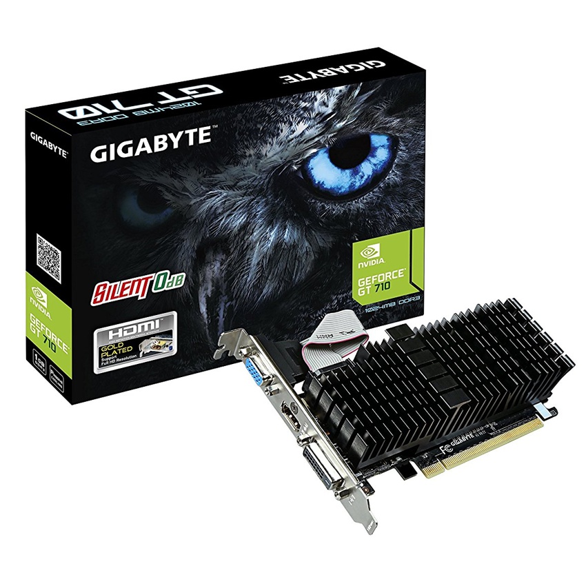 Descripción Gigabyte GV-N710SL-1GL. Familia de procesadores de gráficos: NVIDIA, Procesador gráfico: GeForce GT 710, Máxima resolución: 4096 x 2160 Pixeles. Gráficos discretos memoria del adaptador: 1 GB, Tipo de memoria de adaptador gráfico: GDDR3, Ancho de datos: 64 bit. Tipo de interfaz: PCI Express 2.0. Tipo de enfriamiento: Pasivo, Color del producto: Negro. Consumo energético: 300 W
