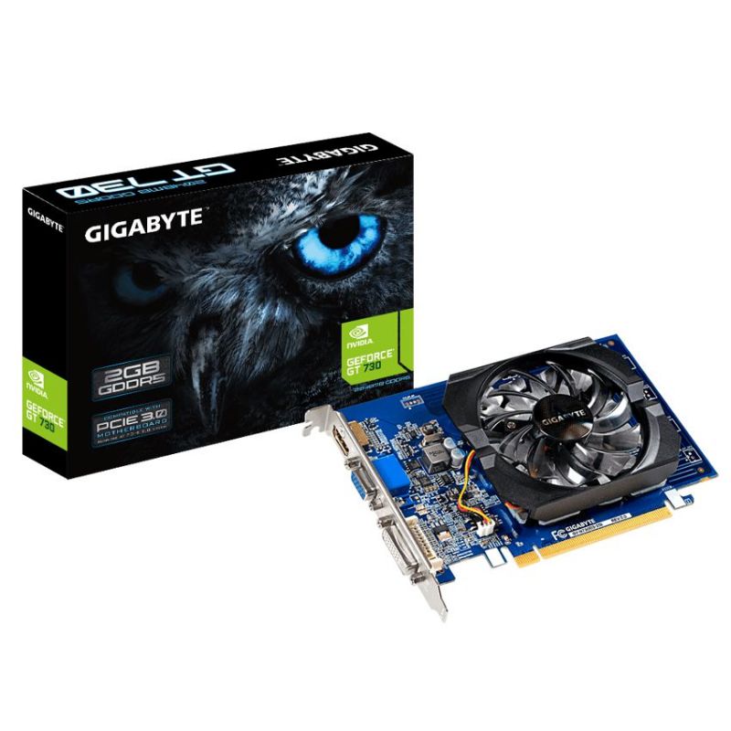 Descripción Gigabyte GeForce GT 730 2GB. Familia de procesadores de gráficos: NVIDIA, Procesador gráfico: GeForce GT 730, Frecuencia del procesador: 902 MHz. Capacidad memoria de adaptador gráfico: 2 GB, Tipo de memoria de adaptador gráfico: GDDR5, Ancho de datos: 64 bit, Velocidad de memoria del reloj: 5000 MHz. Máxima resolución: 4096 x 2160 Pixeles. Versión DirectX: 11.2, Versión OpenGL: 4.4, Dual Link DVI. Tipo de interfaz: PCI Express 2.0. Tipo de enfriamiento: Activo, Número de ventiladores: 1 Ventilador(es)