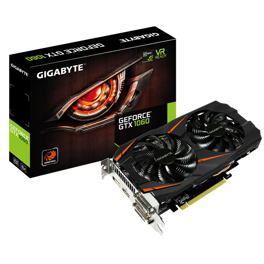 Descripción Gigabyte GeForce GTX 1060 WINDFORCE 3G. Familia de procesadores de gráficos: NVIDIA, Procesador gráfico: GeForce GTX 1060, Frecuencia del procesador: 1506 MHz. Gráficos discretos memoria del adaptador: 3 GB, Tipo de memoria de adaptador gráfico: GDDR5, Ancho de datos: 192 bit. Máxima resolución: 7680 x 4320 Pixeles. Versión DirectX: 12.0, Versión OpenGL: 4.5, Dual Link DVI. Tipo de interfaz: PCI Express x16 3.0. Tipo de enfriamiento: Activo