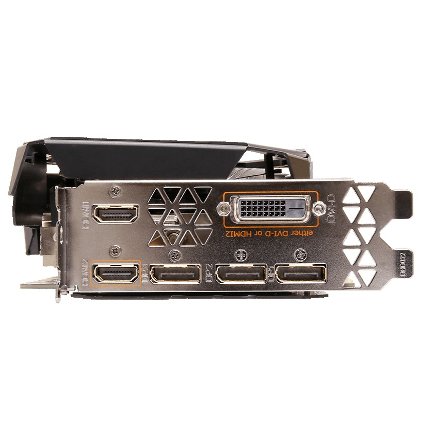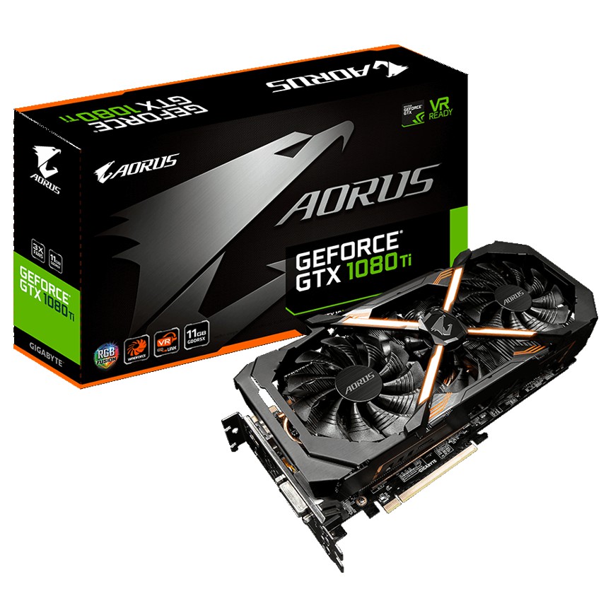Descripción Gigabyte GV-N108TAORUS-11GD. Familia de procesadores de gráficos: NVIDIA, Procesador gráfico: GeForce GTX 1080 TI, Máxima resolución: 7680 x 4320 Pixeles. Gráficos discretos memoria del adaptador: 11 GB, Tipo de memoria de adaptador gráfico: GDDR5X, Ancho de datos: 352 bit. Tipo de interfaz: PCI Express x16 3.0, Versión HDMI: 2.0b. Tipo de enfriamiento: Activo, Número de ventiladores: 3 fan(s), Factor de forma: ATX. Suministro de energía al sistema mínimo: 600 W, Conectores de energia suplementario: 2x 8-pin