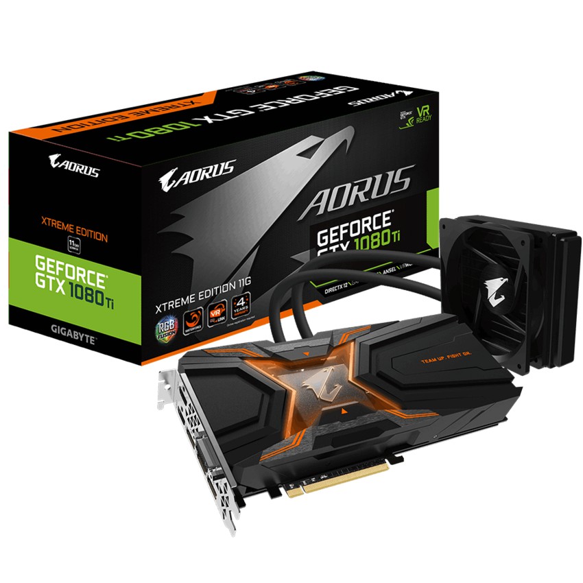 Descripción Gigabyte AORUS GeForce GTX 1080 Ti Waterforce Xtreme Edition. Familia de procesadores de gráficos: NVIDIA, Procesador gráfico: GeForce GTX 1080 Ti, Frecuencia del procesador: 1632 MHz. Capacidad memoria de adaptador gráfico: 11 GB, Tipo de memoria de adaptador gráfico: GDDR5X, Ancho de datos: 352 bit, Velocidad de memoria del reloj: 11448 MHz. Máxima resolución: 7680 x 4320 Pixeles. Versión DirectX: 12.0, Versión OpenGL: 4.5, Dual Link DVI. Tipo de interfaz: PCI Express x16 3.0. Tipo de enfriamiento: Líquido, Número de ventiladores: 1 Ventilador(es)