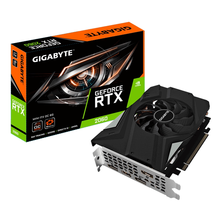 Descripción Gigabyte GV-N2060IXOC-6GD. Familia de procesadores de gráficos: NVIDIA, Frecuencia del procesador: 1695 MHz. Capacidad memoria de adaptador gráfico: 6 GB, Tipo de memoria de adaptador gráfico: GDDR6, Ancho de datos: 192 bit, Velocidad de memoria del reloj: 14000 MHz. Máxima resolución: 7680 x 4320 Pixeles. Versión DirectX: 12.0, Versión OpenGL: 4.5. Tipo de interfaz: PCI Express x16 3.0. Tipo de enfriamiento: Activo, Número de ventiladores: 1 Ventilador(es)