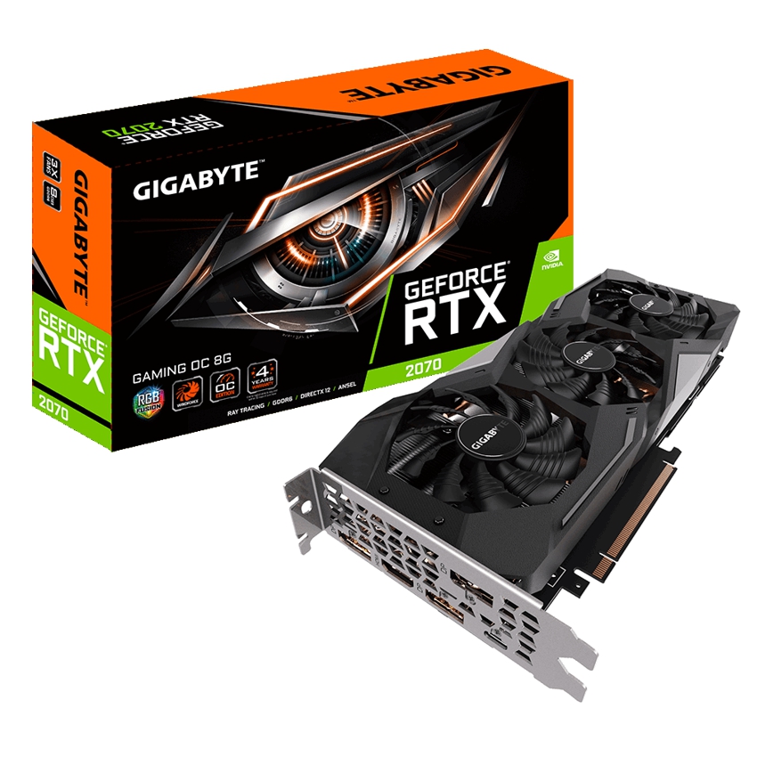 Descripción Features - Powered by GeForce® RTX 2070 - Integrated with 8GB GDDR6 256-bit memory interface - WINDFORCE 3X Cooling System with alternate spinning fans - RGB Fusion ? 16.7M customizable color lighting - Metal Back Plate