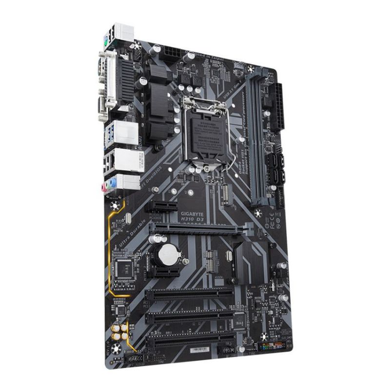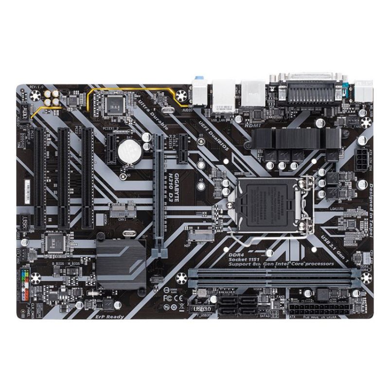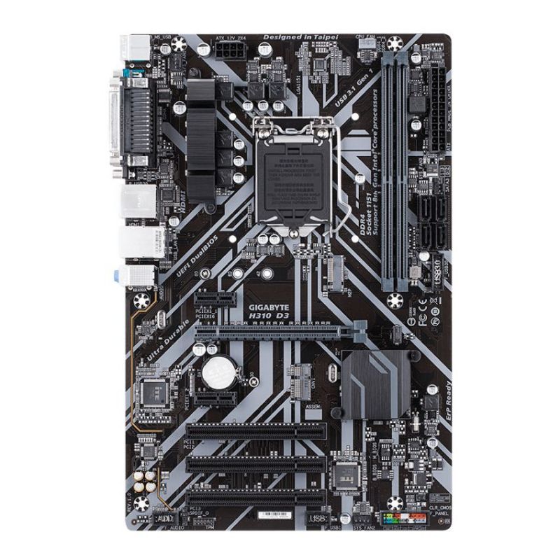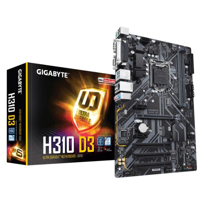 Descripción Gigabyte H310 D3. tipos de memoria compatibles: DDR4-SDRAM, Tipo de ranuras de memoria: DIMM, Velocidades de reloj de memoria soportadas: 2133,2400,2666 MHz. Fabricante de procesador: Intel, Procesador compatible: Intel® Celeron®, Intel® Core™ i3, Intel Core i5, Intel Core i7, Intel® Pentium®, Socket de procesador: LGA 1151 (Zócalo H4). Tipo de interfaz ethernet: Gigabit Ethernet. Componente para: PC, Familia del chipset: Intel, Chipset: Intel H310 Express. Memoria máxima de adaptador de gráficos: 1024 MB, Adaptador gráfico: HD Graphics, Graphics chipset: Intel