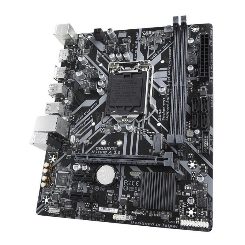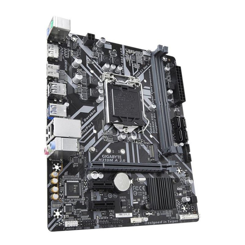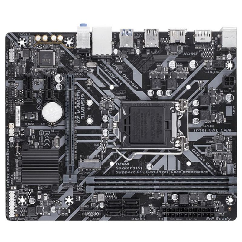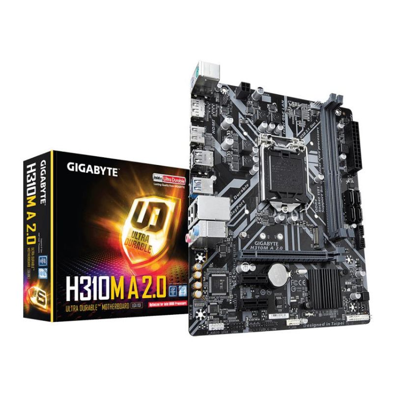 Descripción Gigabyte H310M A 2.0 (rev. 1.0). Fabricante de procesador: Intel, Socket de procesador: LGA 1151 (Zócalo H4), Procesador compatible: Intel® Celeron®, Intel® Core™ i3, Intel Core i5, Intel Core i7, Intel Core i9, Intel® Pentium®. tipos de memoria compatibles: DDR4-SDRAM, Tipo de ranuras de memoria: DIMM, Velocidades de reloj de memoria soportadas: 2133,2400,2666 MHz. Interfaces de disco de almacenamiento soportados: SATA, Serial ATA II, Serial ATA III, Tipos de unidades de almacenamiento admitidas: HDD & SSD. Memoria máxima de adaptador de gráficos: 1024 MB. Tipo de interfaz ethernet: Gigabit Ethernet