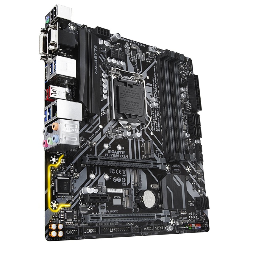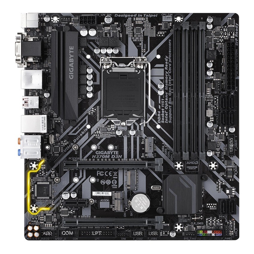Especificaciones CPU - Support for 8th Generation Intel® Core? i7 processors/Intel® Core? i5 processors/Intel® Core? i3 processors/Intel® Pentium® processors/ Intel® Celeron® processors in the LGA1151 package - L3 cache varies with CPU (Please refer "CPU Support List" for more information.) Chipset - Intel® H370 Express Chipset Memory - 4 x DDR4 DIMM sockets supporting up to 64 GB of system memory - Dual channel memory architecture - Support for DDR4 2666/2400/2133 MHz memory modules - Support for ECC Un-buffered DIMM 1Rx8/2Rx8 memory modules (operate in non-ECC mode) - Support for non-ECC Un-buffered DIMM 1Rx8/2Rx8/1Rx16 memory modules - Support for Extreme Memory Profile (XMP) memory modules * To support 2666 MHz or XMP memory, you must install an 8th Generation Intel® Core? i7/i5 processor. (Please refer "Memory Support List" for more information.) Onboard Graphics Integrated Graphics Processor-Intel® HD Graphics support: - 1 x D-Sub port, supporting a maximum resolution of 1920x1200@60 Hz - 1 x DVI-D port, supporting a maximum resolution of 1920x1200@60 Hz - * The DVI-D port does not support D-Sub connection by adapter. - 1 x HDMI port, supporting a maximum resolution of 4096x2160@30 Hz - * Support for HDMI 1.4 version and HDCP 2.2. - Support for up to 3 displays at the same time - Maximum shared memory of 1 GB Audio - Realtek® ALC892 codec - High Definition Audio - 2/4/5.1/7.1-channel - Support for S/PDIF Out LAN - Intel® GbE LAN chip (10/100/1000 Mbit) Expansion Slots - 1 x PCI Express x16 slot, running at x16 (PCIEX16) - * For optimum performance, if only one PCI Express graphics card is to be installed, be sure to install it in the PCIEX16 slot. - 1 x PCI Express x16 slot, running at x4 (PCIEX4) - 1 x PCI Express x1 slot - (All of the PCI Express slots conform to PCI Express 3.0 standard.) - 1 x M.2 Socket 1 connector for an Intel® CNVi wireless module only (CNVI) Storage Interface Chipset: - 1 x M.2 connector (Socket 3, M key, type 2242/2260/2280/22110 SATA and PCIe x2 SSD support) (M2P_16G) - 1 x M.2 connector (Socket 3, M key, type 2242/2260/2280 PCIe x4/x2 SSD support) (M2Q_32G) - 6 x SATA 6Gb/s connectors - Support for RAID 0, RAID 1, RAID 5, and RAID 10 - * Refer to "1-7 Internal Connectors," for the installation notices for the M.2 and SATA connectors. - Intel® Optane? Memory Ready - Multi-Graphics Technology - Support for AMD Quad-GPU CrossFireX? and 2-Way AMD CrossFire? technologies USB Chipset: - 1 x USB Type-C? port on the back panel, with USB 3.1 Gen 2 support - 1 x USB 3.1 Gen 2 Type-A port (red) on the back panel - 6 x USB 3.1 Gen 1 ports (4 ports on the back panel, 2 ports available through the internal USB header) - 6 x USB 2.0/1.1 ports (2 ports on the back panel, 4 ports available through the internal USB headers) * The CNVi connector shares bandwidth with the F_USB2 header. When a Wi-Fi module is populated in the CNVi connector, one of the USB 2.0/1.1 ports routed to the F_USB2 header becomes unavailable. Internal I/O Connectors - 1 x 24-pin ATX main power connector - 1 x 8-pin ATX 12V power connector - 2 x M.2 Socket 3 connectors - 6 x SATA 6Gb/s connectors - 1 x CPU fan header - 3 x system fan headers - 1 x RGB LED strip header - 1 x front panel header - 1 x front panel audio header - 1 x S/PDIF Out header - 1 x USB 3.1 Gen 1 header - 2 x USB 2.0/1.1 headers - 1 x Trusted Platform Module (TPM) header (2x6 pin, for the GC-TPM2.0_S module only) - 1 x serial port header - 1 x parallel port header - 1 x Clear CMOS jumper Back Panel Connectors - 1 x PS/2 keyboard/mouse port - 1 x D-Sub port - 1 x DVI-D port - 1 x HDMI port - 1 x USB Type-C? port, with USB 3.1 Gen 2 support - 1 x USB 3.1 Gen 2 Type-A port (red) - 4 x USB 3.1 Gen 1 ports - 2 x USB 2.0/1.1 ports - 1 x RJ-45 port - 6 x audio jacks I/O Controller - iTE® I/O Controller Chip H/W Monitoring - Voltage detection - Temperature detection - Fan speed detection - Overheating warning - Fan fail warning - Fan speed control * Whether the fan speed control function is supported will depend on the cooler you install. BIOS - 2 x 128 Mbit flash - Use of licensed AMI UEFI BIOS - Support for DualBIOS? - PnP 1.0a, DMI 2.7, WfM 2.0, SM BIOS 2.7, ACPI 5.0 Unique Features - Support for APP Center * Available applications in APP Center may vary by motherboard model. Supported functions of each application may also vary depending on motherboard specifications. - 3D OSD - @BIOS - AutoGreen - Cloud Station - EasyTune - Easy RAID - Fast Boot - Game Boost - ON/OFF Charge - Platform Power Management - RGB Fusion - Smart Backup - Smart Keyboard - Smart TimeLock - Smart HUD - System Information Viewer - USB Blocker - V-Tuner - Support for Q-Flash - Support for Xpress Install Bundle Software - Norton® Internet Security (OEM version) cFosSpeed Operating System - Support for Windows 10 64-bit Form Factor - Micro ATX Form Factor; 24.4cm x 23.0cm