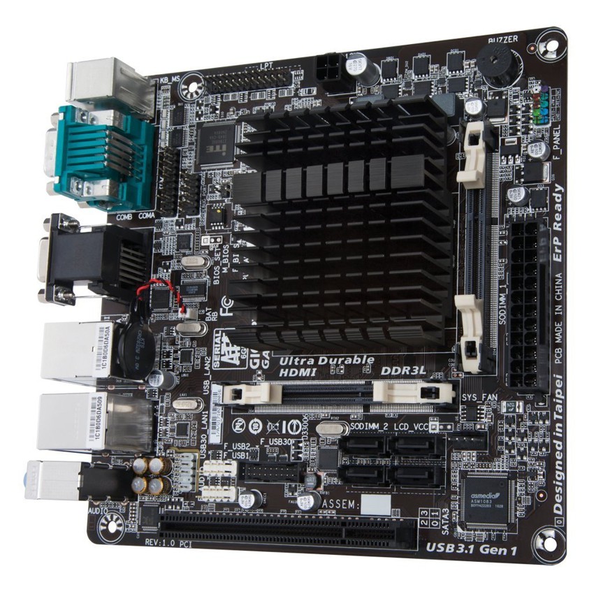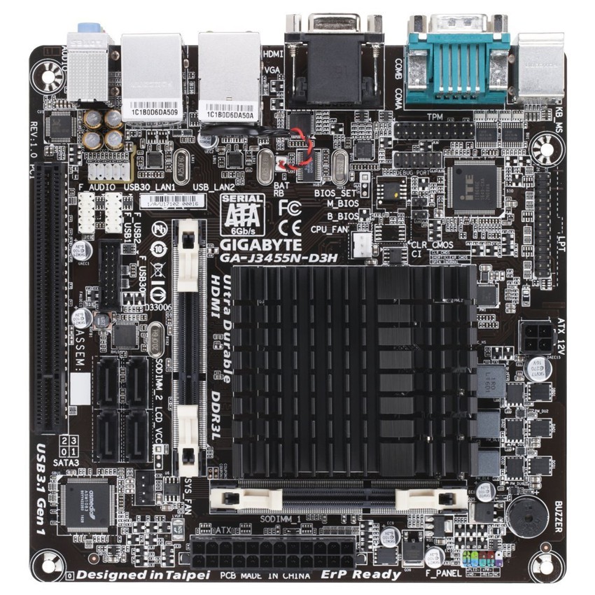 Descripción Condensadores de audio de alta calidad Built-in Intel® Celeron? J3455 (up to 2.3 GHz) quad-core processor Soporta slots Dual channel DDR3L SO-DIMM Interfaz PCI para una amplia selección de tarjetas de expansión Dos interfaces SATA 6Gb/s extra para una mayor conectividad de almacenamiento Dual LAN GbE con protección frente a ESD Tecnología GIGABYTE Ultra Durable? Únicamente condensadores sólidos con diseño PCB protegido frente a la humedad