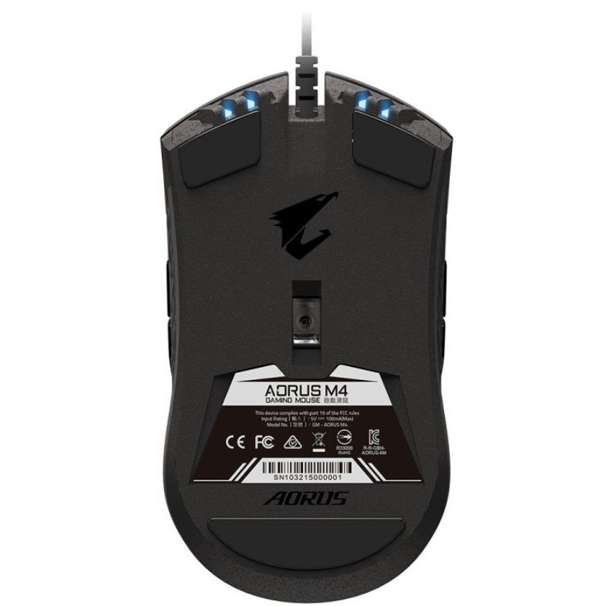 Descripción Gigabyte AORUS M4. Factor de forma: Ambidextro. Tecnología de detección de movimientos: Óptico, Interfaz del dispositivo: USB tipo A, Resolución de movimiento: 6400 DPI, Tipo de botones: Botones presionados, Cantidad de botones: 6, Tipo de desplazamiento: Rueda, Aceleración (máx.): 50 G. Iluminación de color: Rojo/Verde/Azul. Fuente de energía: Cable. Color del producto: Negro