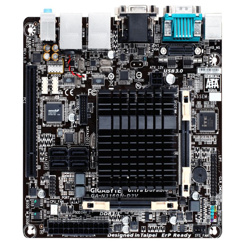 La placa base GIGABYTE N3160N Mini-ITX es una placa base para PC completamente integrada con el procesador Intel Celeron N3160 quad-core.