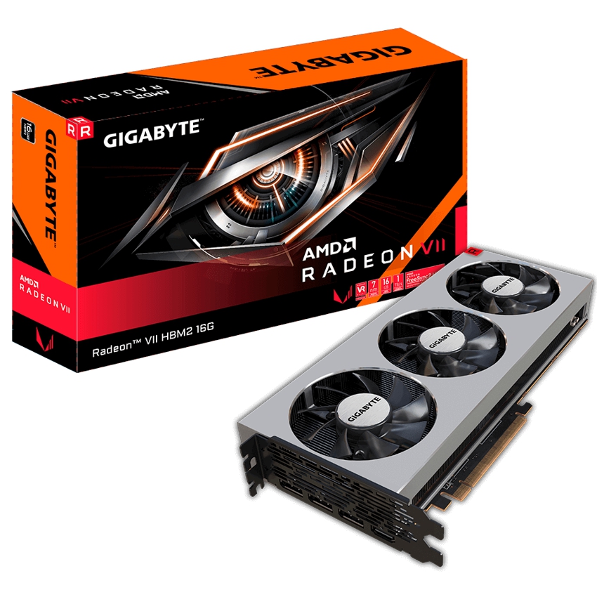Descripción Gigabyte GV-RVEGA20-16GD-B. Familia de procesadores de gráficos: AMD, Procesador gráfico: Radeon VII, Frecuencia del procesador: 1400 MHz. Capacidad memoria de adaptador gráfico: 16 GB, Tipo de memoria de adaptador gráfico: Memoria de alto ancho de banda de segunda generación (HBM2), Ancho de datos: 4096 bit, Velocidad de memoria del reloj: 1000 MHz. Máxima resolución: 7680 x 4320 Pixeles. Versión DirectX: 12.0, Versión OpenGL: 4.5. Tipo de interfaz: PCI Express x16 3.0. Tipo de enfriamiento: Activo, Número de ventiladores: 3 Ventilador(es)