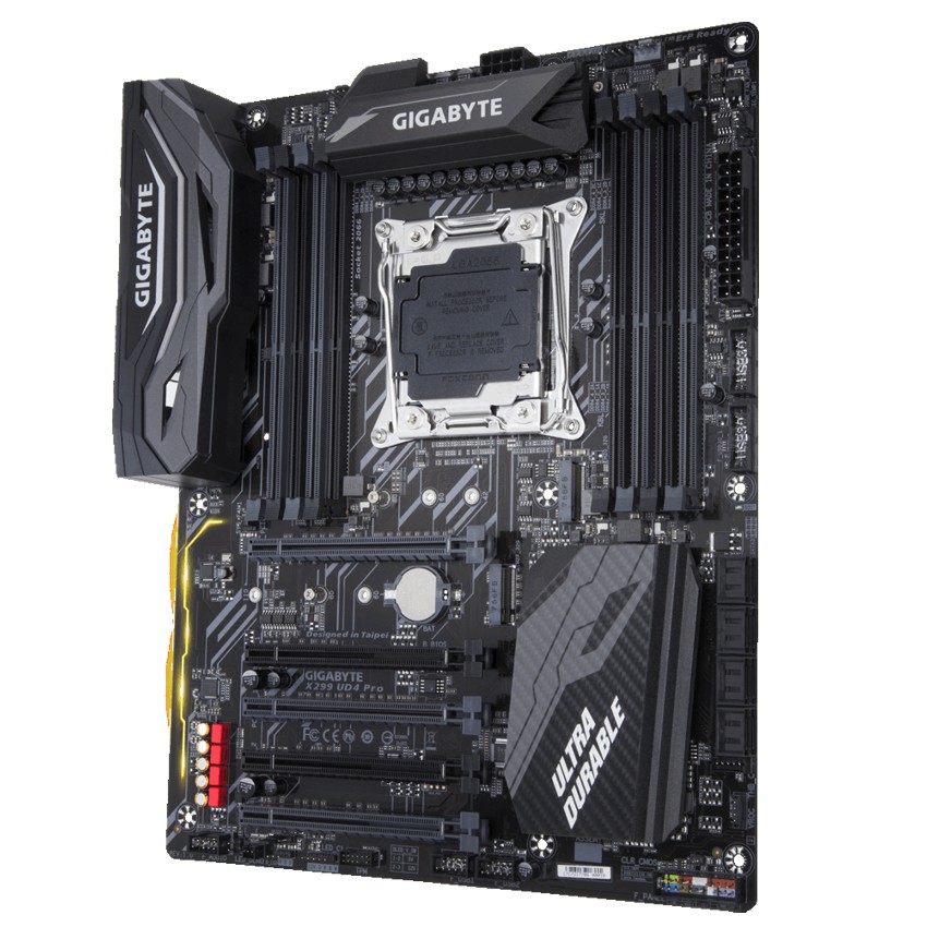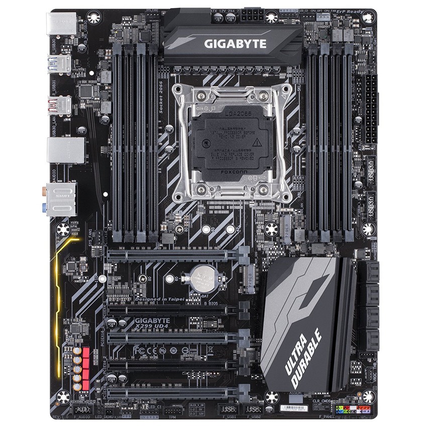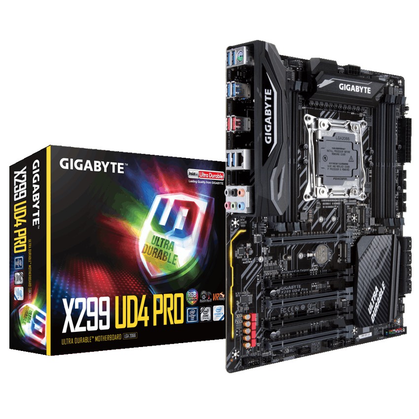 Descripción Gigabyte X299 UD4 Pro. tipos de memoria compatibles: DDR4-SDRAM, Tipo de ranuras de memoria: DIMM, Velocidades de reloj de memoria soportadas: 2133,2400,2667 MHz. Familia de procesador: Intel, Procesador compatible: Core X-series, Socket de procesador: LGA 2066. Tipo de interfaz ethernet: Gigabit Ethernet. Componente para: PC, Familia de componentes de tarjeta madre: Intel, Circuito integrado de tarjeta madre: Intel X299. Soporte para proceso paralelo: 2-Way CrossFireX,2-Way SLI,3-Way CrossFireX,3-Way SLI,Quad-GPU CrossFireX,Quad-GPU SLI