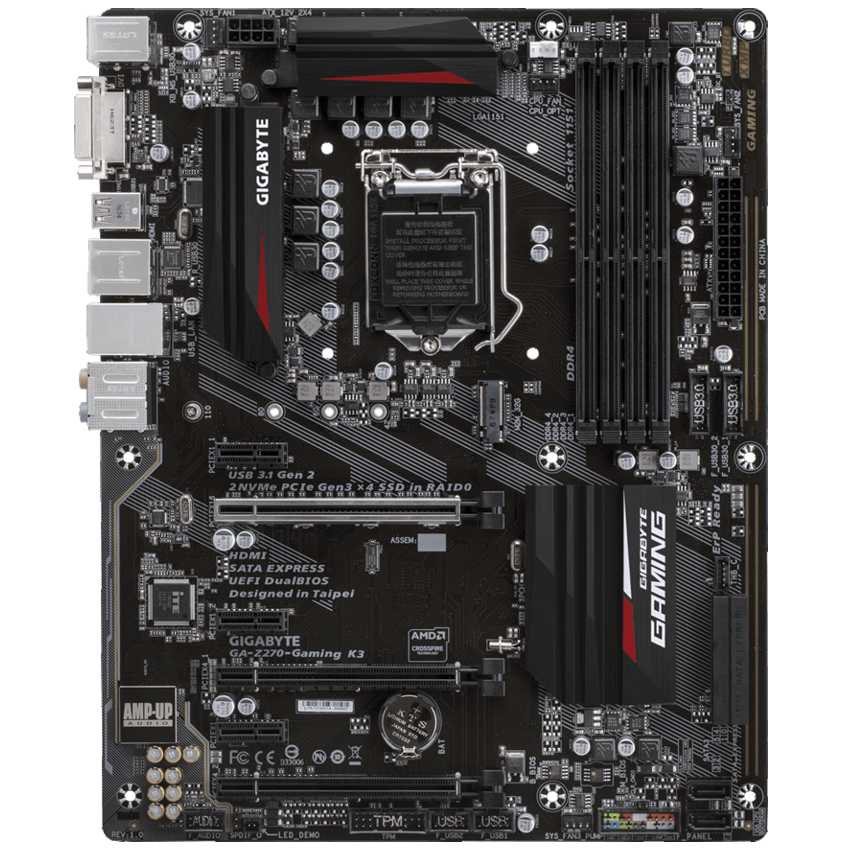 Descripción Gigabyte GA-Z270-Gaming K3. tipos de memoria compatibles: DDR4-SDRAM, Tipo de ranuras de memoria: DIMM, Canales de memoria: Dual. Familia de procesador: Intel, Procesador compatible: Celeron, Core i3, Core i5, Core i7, Pentium, Socket de procesador: LGA1151. Componente para: PC, Familia de componentes de tarjeta madre: Intel, Circuito integrado de tarjeta madre: Intel Z270. Tipos de BIOS: UEFI AMI, BIOS, tamaño de memoria: 64 MB, Versión ACPI: 5.0. Ancho: 244 mm, Profundidad: 305 mm