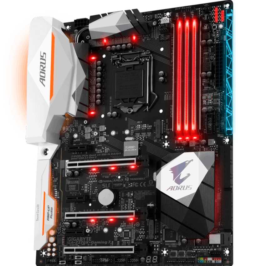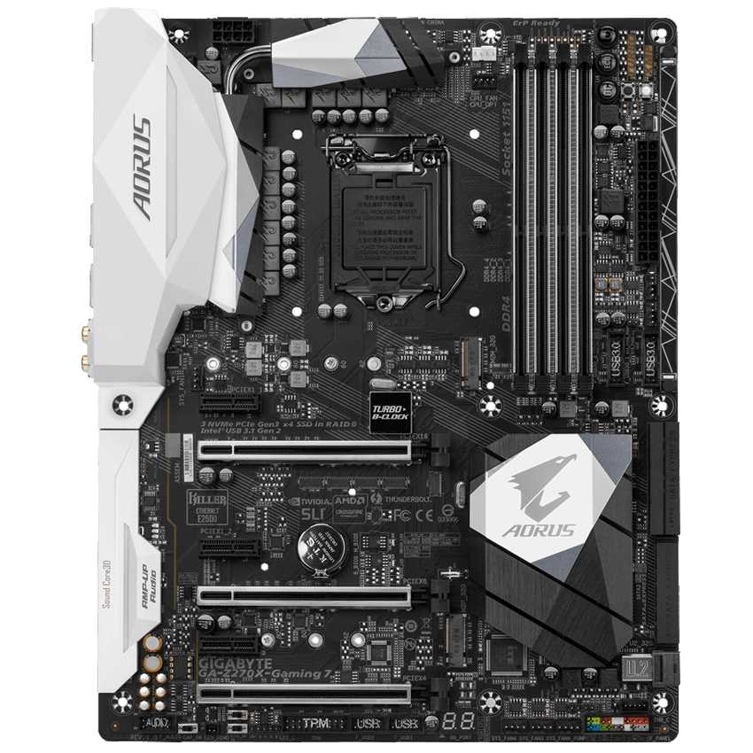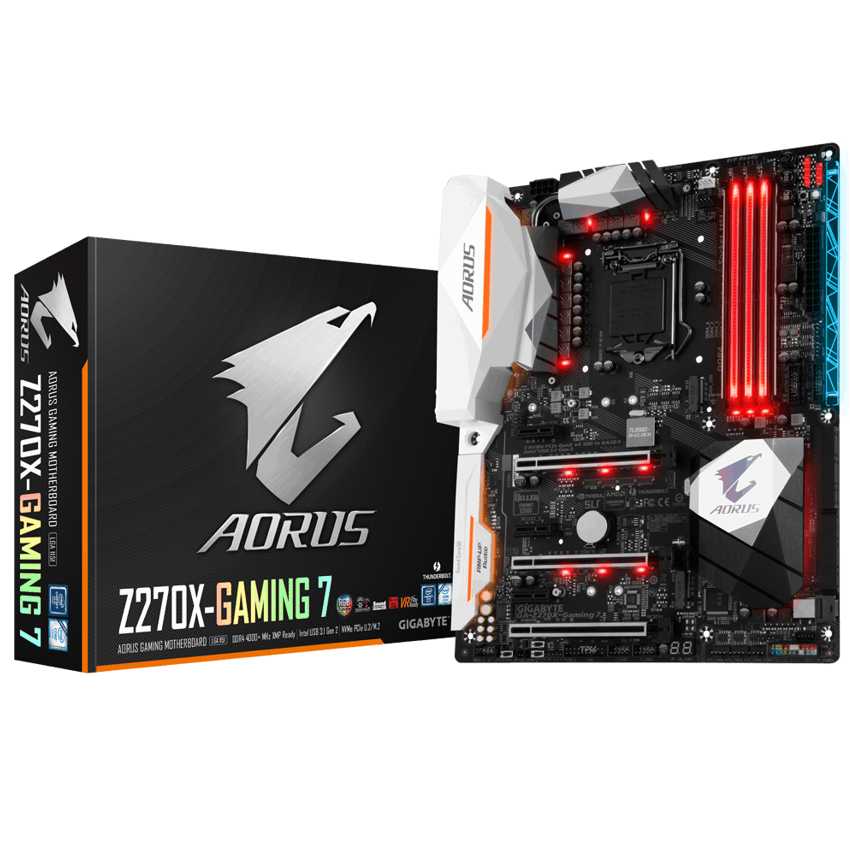 Descripción Gigabyte GA-Z270X-GAMING 7. tipos de memoria compatibles: DDR4-SDRAM, Tipo de ranuras de memoria: DIMM, Velocidades de reloj de memoria soportadas: 2133,2400,2666,2800,3000,3200,3300,3333,3400,3466,3600,3666,3733,3800,3866,4000 MHz. Familia de procesador: Intel, Procesador compatible: Celeron, Core i3, Core i5, Core i7, Pentium, Socket de procesador: LGA1151. Componente para: PC, Familia de componentes de tarjeta madre: Intel, Tarjeta madre, factor de forma: ATX. Tipos de BIOS: EFI AMI, Versión ACPI: 5.0. Ancho: 244 mm, Profundidad: 305 mm