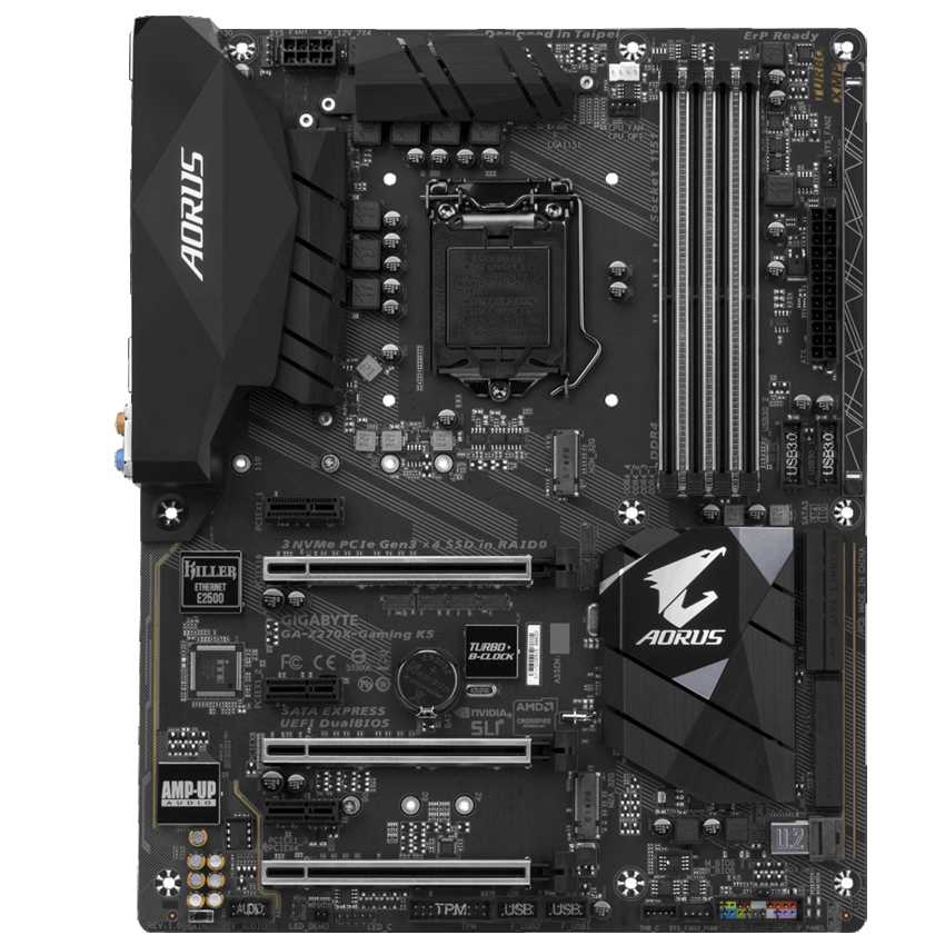 Descripción Gigabyte GA-Z270X-Gaming K5. tipos de memoria compatibles: DDR4-SDRAM, Tipo de ranuras de memoria: DIMM, Canales de memoria: Dual. Familia de procesador: Intel, Procesador compatible: Celeron, Core i3, Core i5, Core i7, Pentium, Socket de procesador: LGA1151. Componente para: PC, Familia de componentes de tarjeta madre: Intel, Circuito integrado de tarjeta madre: Intel Z270. Tipos de BIOS: UEFI AMI, BIOS, tamaño de memoria: 64 MB, Versión ACPI: 5.0. Ancho: 244 mm, Profundidad: 305 mm