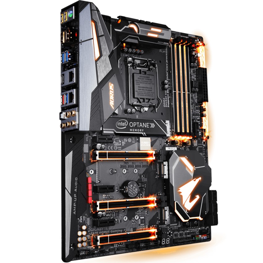 Descripción Gigabyte Z370 AORUS GAMING 7-OP. tipos de memoria compatibles: DDR4-SDRAM, Tipo de ranuras de memoria: DIMM, Velocidades de reloj de memoria soportadas: 2133,2400,2666,2800,3000,3200,3300,3333,3400,3466,3600,3666,3733,3800,3866,4000,4133 MHz. Fabricante de procesador: Intel, Procesador compatible: Intel® Celeron®, Intel Core i3, Intel Core i5, Intel Core i7, Intel® Pentium®, Socket de procesador: LGA 1151 (Socket H4). Tipo de interfaz ethernet: Gigabit Ethernet. Componente para: PC, Familia del chipset: Intel, Chipset: Intel Z370. Tipos de BIOS: UEFI AMI, BIOS, tamaño de memoria: 128 MB