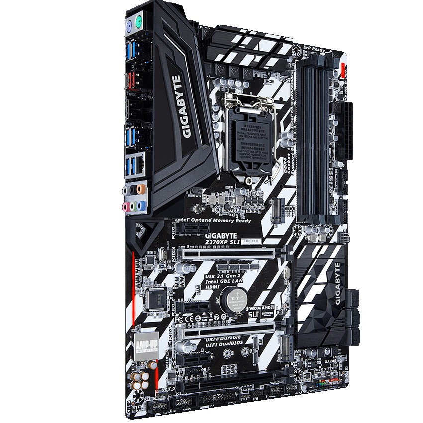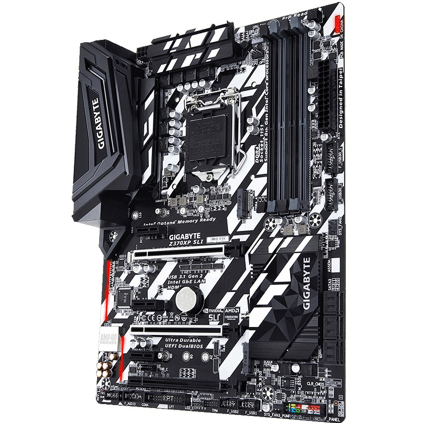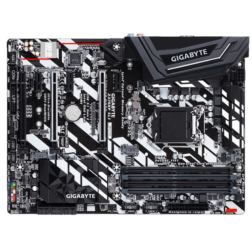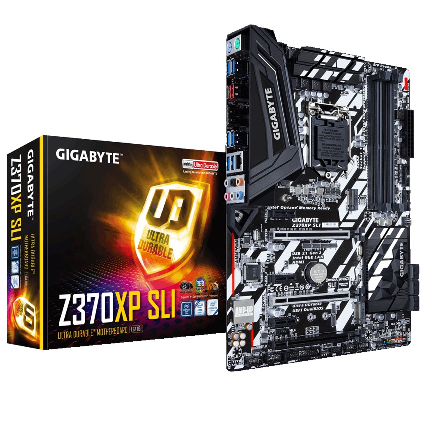Descripción Gigabyte Z370XP SLI. tipos de memoria compatibles: DDR4-SDRAM, Tipo de ranuras de memoria: DIMM, Velocidades de reloj de memoria soportadas: 2133,4000 MHz. Familia de procesador: Intel, Procesador compatible: Core i3,Core i5,Core i7, Socket de procesador: LGA 1151 (Socket H4). Interfaces de disco de almacenamiento soportados: M.2, Serial ATA III. Tipo de interfaz ethernet: Gigabit Ethernet. Componente para: PC, Familia de componentes de tarjeta madre: Intel, Tarjeta madre, factor de forma: ATX