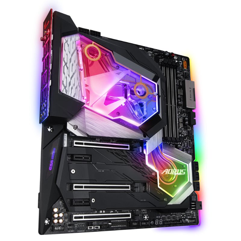 Descripción Gigabyte Z390 Aorus Xtreme Waterforce (rev 1.0). Fabricante de procesador: Intel, Socket de procesador: LGA 1151 (Zócalo H4), Procesador compatible: Intel® Celeron®, Intel® Core? i3, Intel Core i5, Intel Core i7, Intel Core i9. tipos de memoria compatibles: DDR4-SDRAM, Tipo de ranuras de memoria: DIMM, Velocidades de reloj de memoria soportadas: 2133,2400,2666,2800,3000,3200,3300,3333,3400,3466,3600,3666,3733,3800,3866,4000,4133,4266,4333,4400. Interfaces de disco de almacenamiento soportados: M.2,Serial ATA III, Tipos de unidades de almacenamiento admitidas: Unidad de disco duro, SSD. Soporte para proceso paralelo: 2-Way CrossFireX,2-Way SLI,3-Way CrossFireX,Quad-GPU CrossFireX,Quad-GPU SLI. Tipo de interfaz ethernet: 10 Gigabit Ethernet, Wi-Fi estándares: 802.11a,802.11b,802.11g,Wi-Fi 4 (802.11n),Wi-Fi 5 (802.11ac)