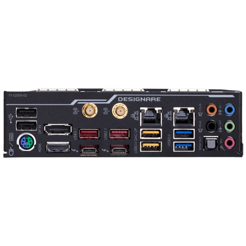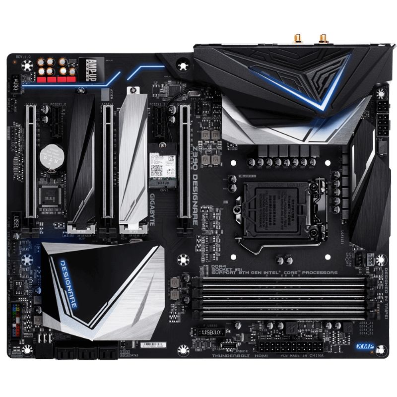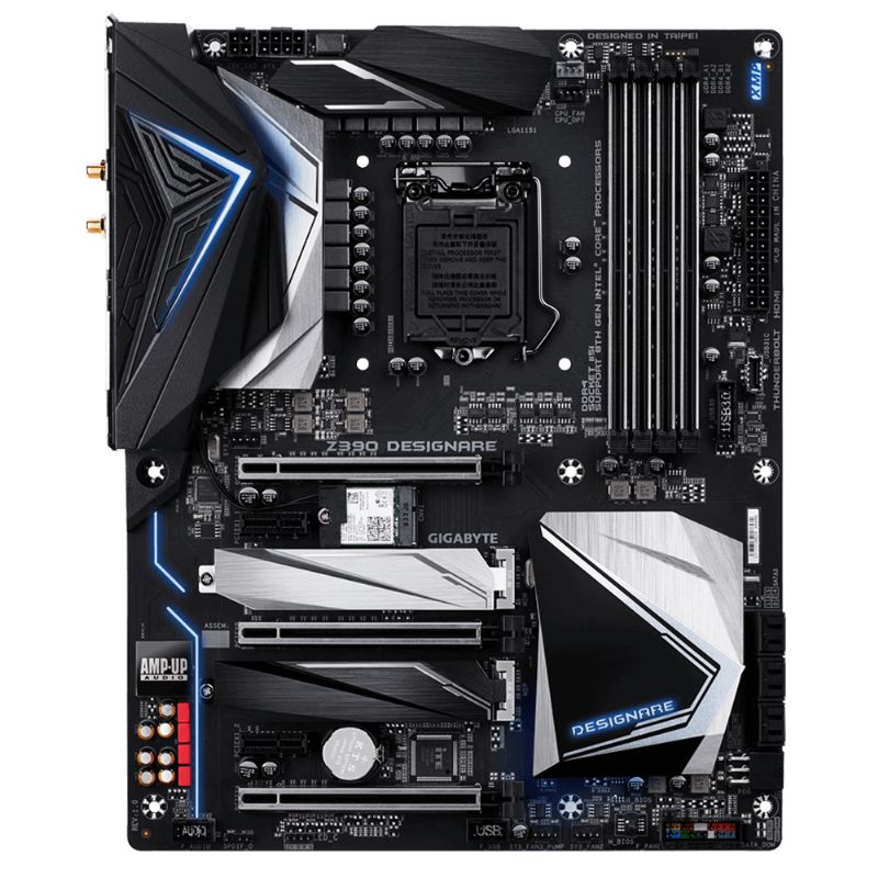 Descripción Gigabyte Z390 DESIGNARE (rev. 1.0). tipos de memoria compatibles: DDR4-SDRAM, Tipo de ranuras de memoria: DIMM, Velocidades de reloj de memoria soportadas: 2133,2400,2666,2800,3000,3200,3300,3333,3400,3466,3600,3666,3733,3800,3866,4000,4133,4266 MHz. Fabricante de procesador: Intel, Procesador compatible: Intel® Celeron®, Intel® Core? i3, Intel Core i5, Intel Core i7, Intel Core i9, Intel® Pentium®, Socket de procesador: LGA 1151 (Zócalo H4). Tipos de unidades de almacenamiento admitidas: Unidad de disco duro, SSD, Niveles RAID: 0, 1, 5, 10. Interfaces de disco de almacenamiento soportados: M.2,Serial ATA III. Tipo de interfaz ethernet: Ethernet rápido, Gigabit Ethernet, Wi-Fi estándares: IEEE 802.11a,IEEE 802.11ac,IEEE 802.11b,IEEE 802.11g,IEEE 802.11n