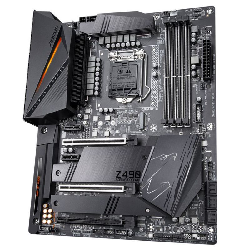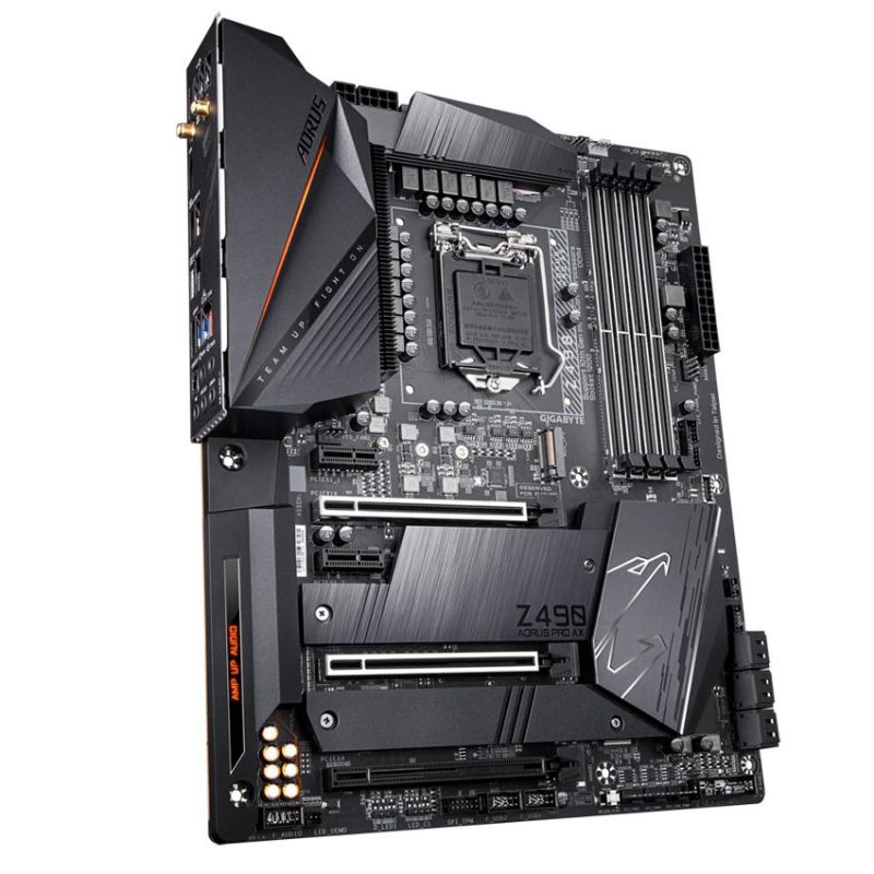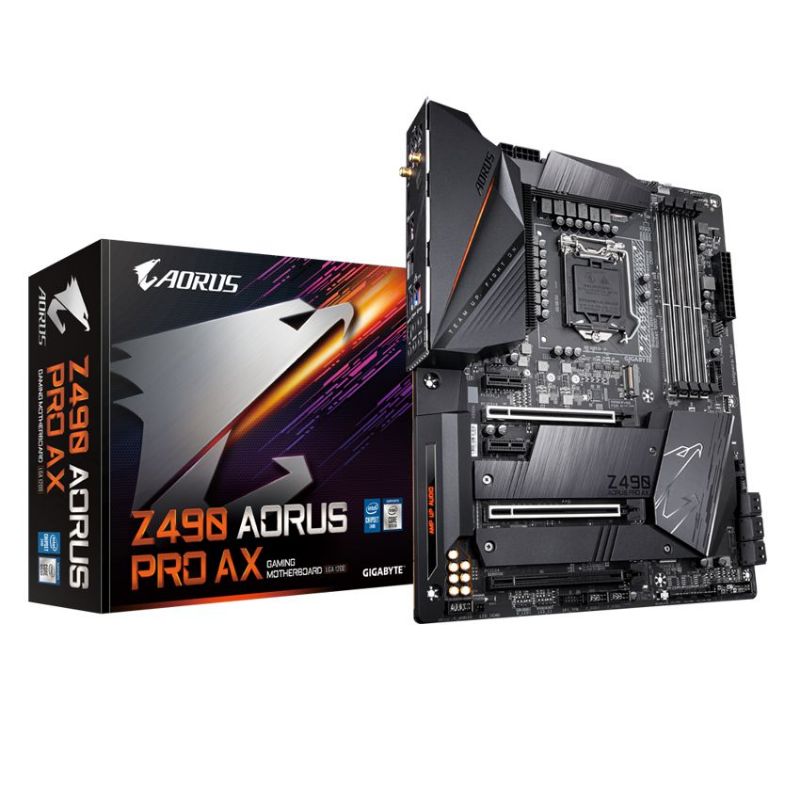Descripción Gigabyte Z490 AORUS PRO AX. Fabricante de procesador: Intel, Socket de procesador: LGA 1200, Procesador compatible: Intel® Celeron®, Intel® Core™ i3, Intel Core i5, Intel Core i7, Intel Core i9, Intel® Pentium®. tipos de memoria compatibles: DDR4-SDRAM, Tipo de ranuras de memoria: DIMM, Velocidades de reloj de memoria soportadas: 2133,2400,2666,2800,2933,3000,3200,3300,3333,3400,3466,3600,3666,3733,3800,3866,4000,4133,4266,4300,. Interfaces de disco de almacenamiento soportados: M.2,Serial ATA III, Tipos de unidades de almacenamiento admitidas: HDD & SSD. Soporte para proceso paralelo: 2-Way CrossFireX,2-Way SLI,Quad-GPU CrossFireX,Quad-GPU SLI, Graphics chipset: Intel, Adaptador gráfico: HD Graphics. Tipo de interfaz ethernet: 2.5 Gigabit Ethernet, Wi-Fi estándares: 802.11a,802.11b,802.11g,Wi-Fi 4 (802.11n),Wi-Fi 5 (802.11ac),Wi-Fi 6 (802.11ax)