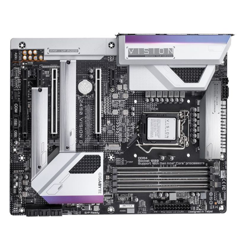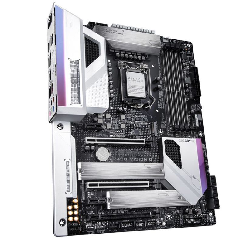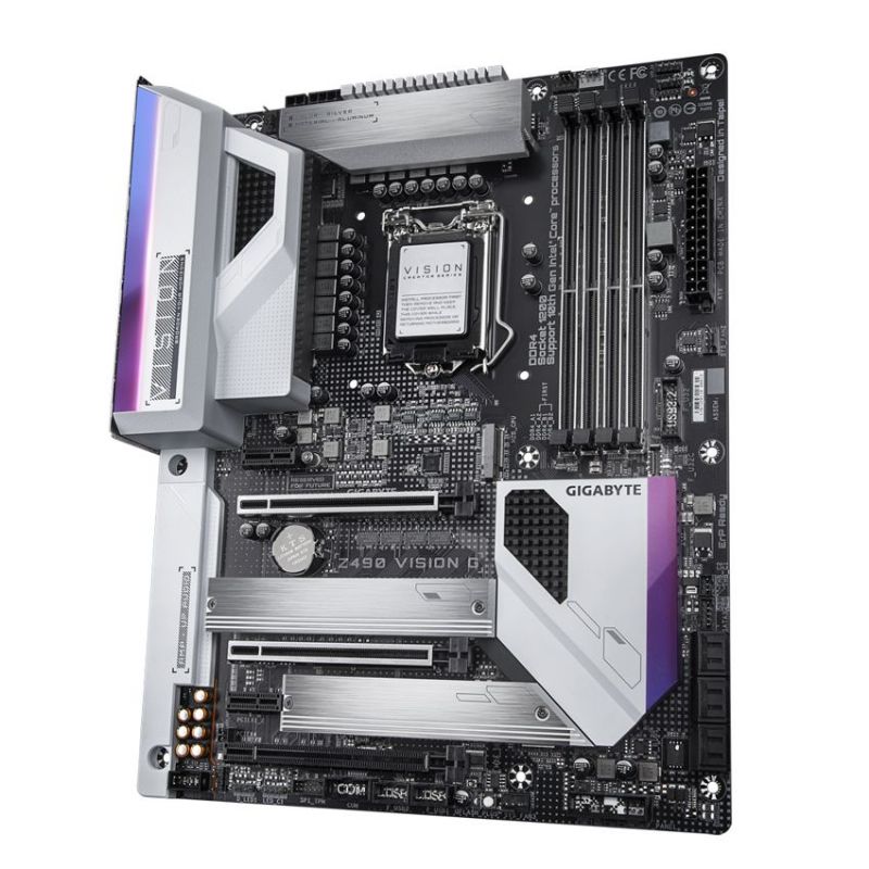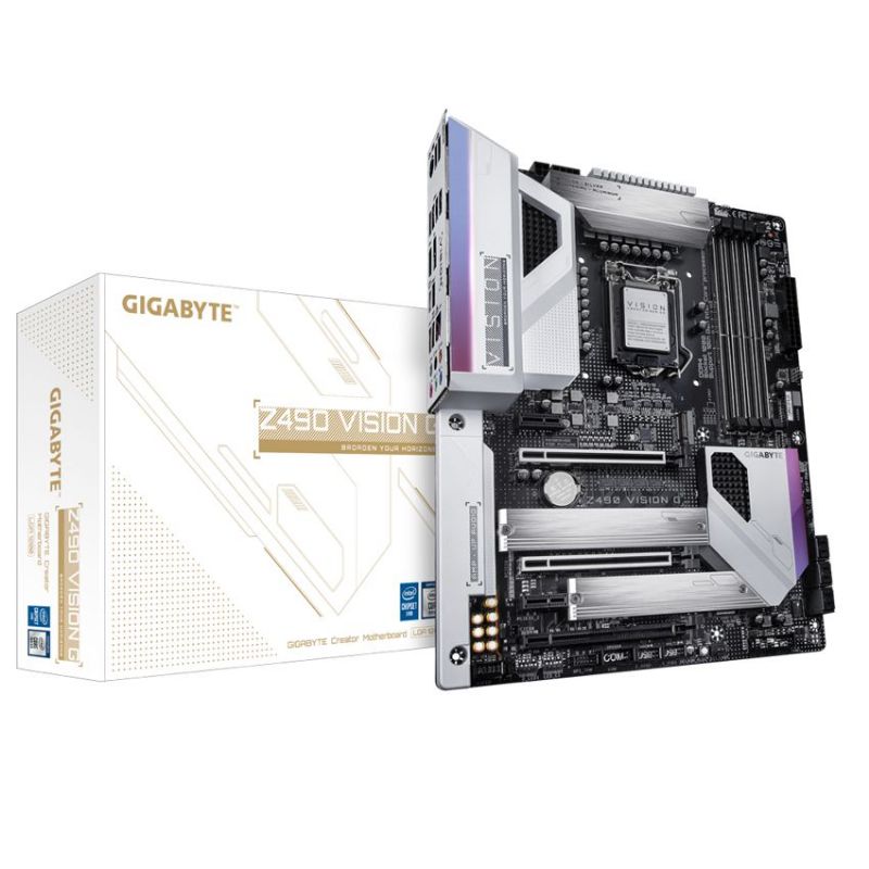 Descripción Gigabyte Z490 VISION G (rev. 1.x). Fabricante de procesador: Intel, Socket de procesador: LGA 1200, Procesador compatible: Intel® Celeron®, Intel® Core™ i3, Intel Core i5, Intel Core i7, Intel Core i9, Intel® Pentium®. tipos de memoria compatibles: DDR4-SDRAM, Tipo de ranuras de memoria: DIMM, Velocidades de reloj de memoria soportadas: 2400,2666,2800,2933,3000,3200,3300,3333,3400,3466,3600,3666,3733,3800,3866,4000,4133,4266,4300,4400,. Interfaces de disco de almacenamiento soportados: M.2, Serial ATA III, Tipos de unidades de almacenamiento admitidas: HDD & SSD. Soporte para proceso paralelo: 2-Way CrossFireX,2-Way SLI,Quad-GPU CrossFireX,Quad-GPU SLI. Conector USB: USB tipo A, USB Tipo C