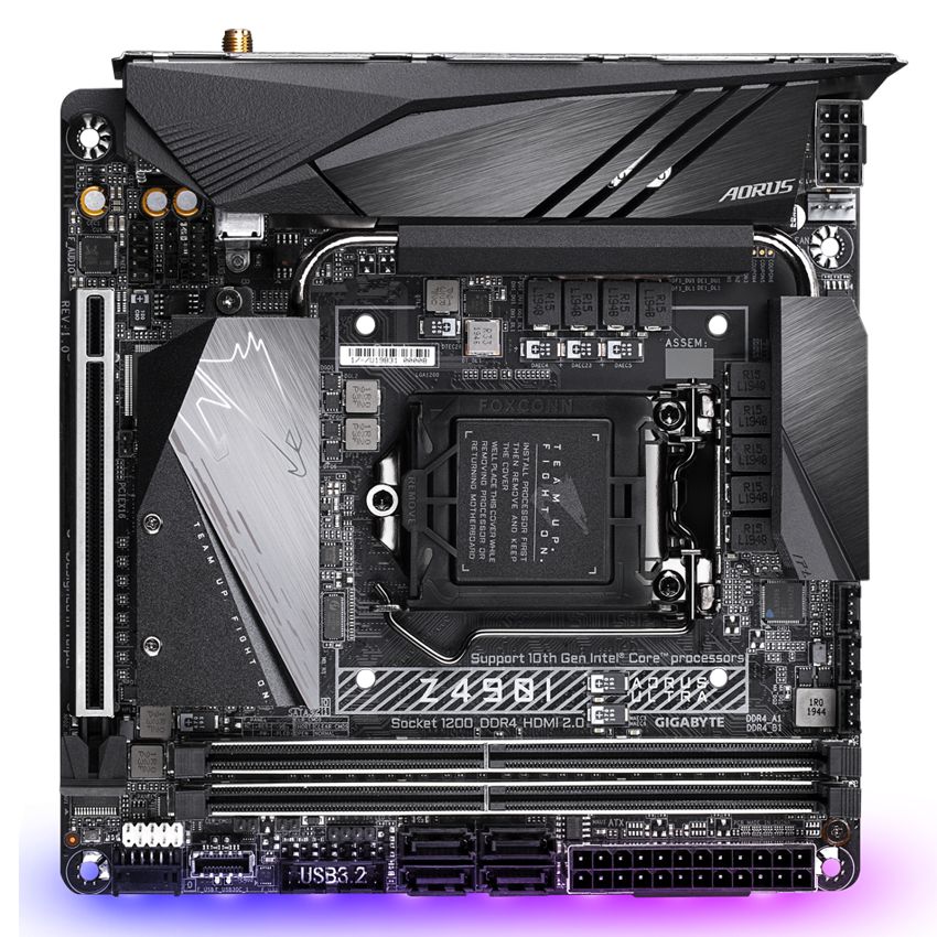 Descripción Gigabyte Z490I AORUS ULTRA (rev. 1.x). Fabricante de procesador: Intel, Socket de procesador: LGA 1200, Procesador compatible: Intel® Celeron®, Intel® Core™ i3, Intel Core i5, Intel Core i7, Intel Core i9, Intel® Pentium®. tipos de memoria compatibles: DDR4-SDRAM, Tipo de ranuras de memoria: DIMM, Velocidades de reloj de memoria soportadas: 5000,4933,2133,2400,2666,2800,2933,3000,3200,3300,3333,3400,3466,3600,3666,3733,3800,3866,4000,4133,. Interfaces de disco de almacenamiento soportados: Serial ATA III, Tipos de unidades de almacenamiento admitidas: HDD & SSD. Memoria máxima de adaptador de gráficos: 512 MB, Graphics chipset: Intel, Adaptador gráfico: HD Graphics. Tipo de interfaz ethernet: 2.5 Gigabit Ethernet, Wi-Fi estándares: 802.11a,802.11b,802.11g,Wi-Fi 4 (802.11n),Wi-Fi 5 (802.11ac),Wi-Fi 6 (802.11ax)