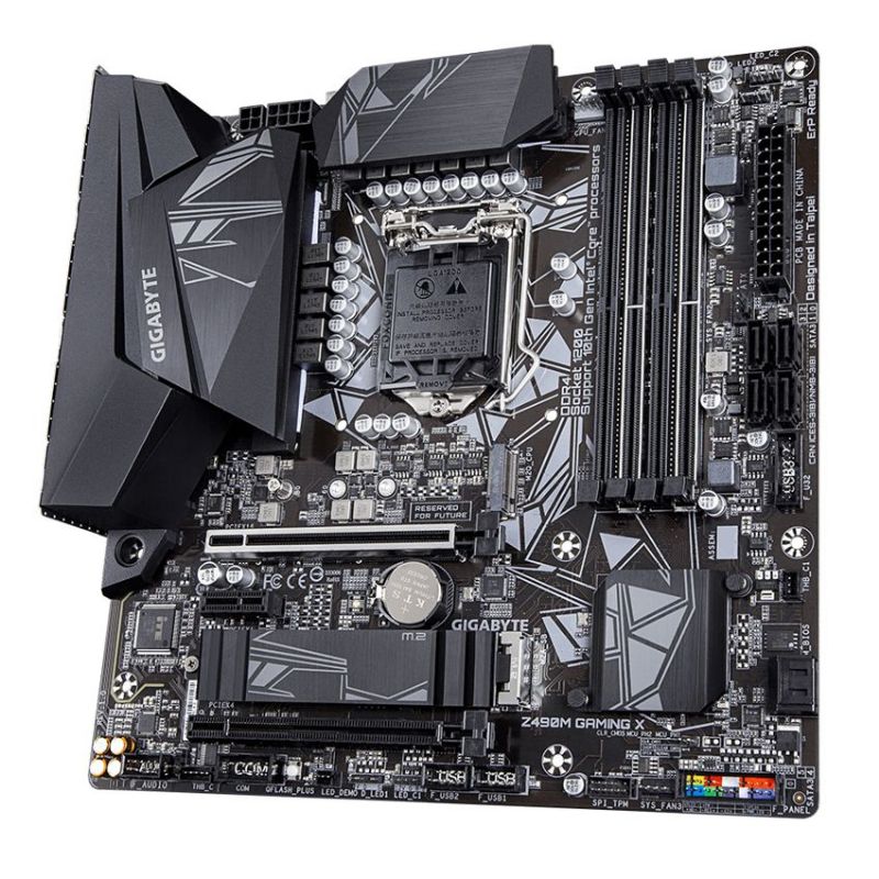 Descripción Gigabyte Z490M GAMING X (rev. 1.0). Fabricante de procesador: Intel, Socket de procesador: LGA 1200, Procesador compatible: Intel® Celeron®, Intel® Core™ i3, Intel Core i5, Intel Core i7, Intel Core i9, Intel® Pentium®. tipos de memoria compatibles: DDR4-SDRAM, Tipo de ranuras de memoria: DIMM, Velocidades de reloj de memoria soportadas: 2133,2400,2666,2800,2933,3000,3200,3300,3333,3400,3466,3600,3666,3733,3800,3866,4000,4133,4266,4300,. Interfaces de disco de almacenamiento soportados: M.2, PCI Express, Serial ATA III, Tipos de unidades de almacenamiento admitidas: HDD & SSD. Soporte para proceso paralelo: 2-Way CrossFireX,Quad-GPU CrossFireX. Conector USB: USB tipo A, USB Tipo C