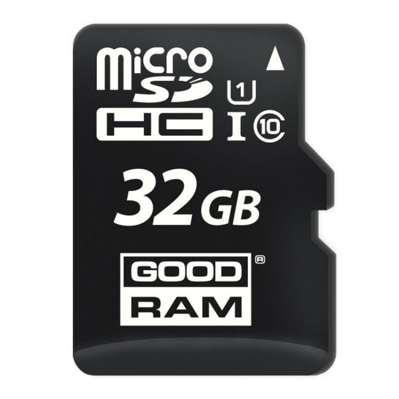 Descripción Goodram M1A0-0320R12. Capacidad: 32 GB, Tipo de tarjeta flash: MicroSDHC, Clase de memoria flash: Clase 10, Tipo de memoria interna: UHS-I, Velocidad de lectura: 100 MB/s, Velocidad de escritura: 10 MB/s, Clase de velocidad UHS: Class 1 (U1). Color del producto: Negro