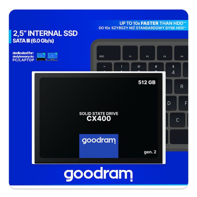 Descripción SSD CX400 gen.2 SATA III 2,5? Olvídate de tu disco de plato y garantízate una eficiencia 10 veces mejor al transferir tus datos al SSD CX400 gen.2. Aparte de ofrecer una mayor capacidad de respuesta, tus datos también van a estar mucho más seguros. CX400 gen.2 no cuenta con piezas móviles, por lo que es mucho más resistente a choques y golpes que un disco duro. Nueva generación de memoria flash en tu SSD nuevo GOODRAM CX400 gen.2se basa en memorias flash ejecutadas en la tecnología 3D TLC. Esto permite garantizar una mayor estabilidad del trabajo del CX400 gen.2 y la resistencia del disco a la escritura ha mejorado en comparación con las memorias tradicionales planas de generaciones anteriores.