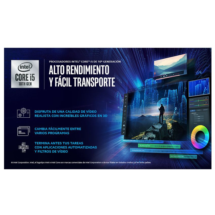 Especificaciones Exhibición Cobertura NTSC (típica) 45% Diagonal de la pantalla 39,6 cm (15.6") Diagonal de pantalla 39,6 cm Espacio de color RGB NTSC Gama de colores 45% Tipo HD HD Retroiluminación LED Si Pantalla táctil No Pantalla antirreflectante Si Pantalla dual No Relación de aspecto nativa 16:9 Resolución de la pantalla 1366 x 768 Pixeles Tecnología de pantalla bisel Micro-Edge Tipo de pantalla SVA Procesador Caché del procesador 6 MB Versión de entradas de PCI Express 3.0 Fabricante de procesador Intel Familia de procesador Intel® Core™ i5 de 10ma Generación Frecuencia del procesador 1 GHz Frecuencia del procesador turbo 3,6 GHz Frecuencia de potencia de diseño térmico configurable-alta 1,2 GHz Frecuencia de potencia de diseño térmico configurable-baja 0,7 GHz Intersección T 100 °C Litografía del procesador 10 nm Modelo del procesador i5-1035G1 Modo de procesador operativo 64 bits Número de núcleos de procesador 4 Número de filamentos de procesador 8 Potencia de diseño térmico (TDP) 15 W Potencia de diseño térmico configurable-alta 25 W Potencia de diseño térmico configurable-baja 13 W Socket de procesador BGA 1526 System bus data transfer rate 4 GT/s Tipo de cache en procesador L3 Puertos e Interfaces Cantidad de puertos tipo A USB 3.2 Gen 1 (3.1 Gen 1) 2 Cantidad de puertos tipo C USB 3.2 Gen 1 (3.1 Gen 1) 1 Combo de salida de auriculares / micrófono del puerto Si Número de puertos HDMI 1 Versión HDMI 1.4b Memoria Disposición de la memoria 1 x 8 GB ECC No Forma de factor de memoria SO-DIMM Memoria interna 8 GB Ranuras de memoria 1x SO-DIMM Tipo de memoria interna DDR4-SDRAM Velocidad de memoria del reloj 2666 MHz Peso y dimensiones Altura 17,9 mm Ancho 358,5 mm Peso 1,69 kg Profundidad 242 mm Control de energía Potencia de adaptador AC 45 W Audio Micrófono incorporado Si Número de altavoces incorporados 2 Detalles técnicos Certificados de sostenibilidad EPEAT Silver, ENERGY STAR Teclado Dispositivo apuntador Touchpad Tablero estilo islas Si Teclado numérico Si Teclado de tamaño completo Si Conexión
