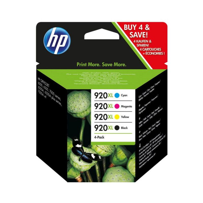 Descripción Ideal para usuarios de oficinas domésticas que necesiten generar colores con calidad empresarial por menos. El pack de ahorro de 4 cartuchos de tinta HP 920XL negro/cian/magenta/amarillo imprimen documentos profesionales a color por un precio inferior a las láser. Los cartuchos de alta capacidad ofrecen un valor excepcional para una impresión frecuente.