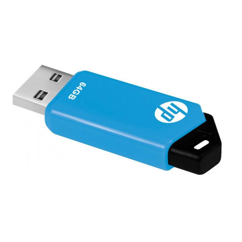 Descripción HP v150w. Capacidad: 64 GB, Interfaz del dispositivo: USB tipo A, Versión USB: 2.0. Factor de forma: Deslizar, Color del producto: Negro, Azul