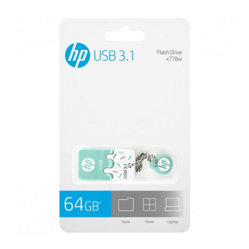 Descripción HP x778w. Capacidad: 64 GB, Interfaz del dispositivo: USB tipo A, Versión USB: 3.2 Gen 1 (3.1 Gen 1), Velocidad de lectura: 75 MB/s, Velocidad de escritura: 30 MB/s. Factor de forma: Tapa. Peso: 8,1 g. Color del producto: Verde, Blanco