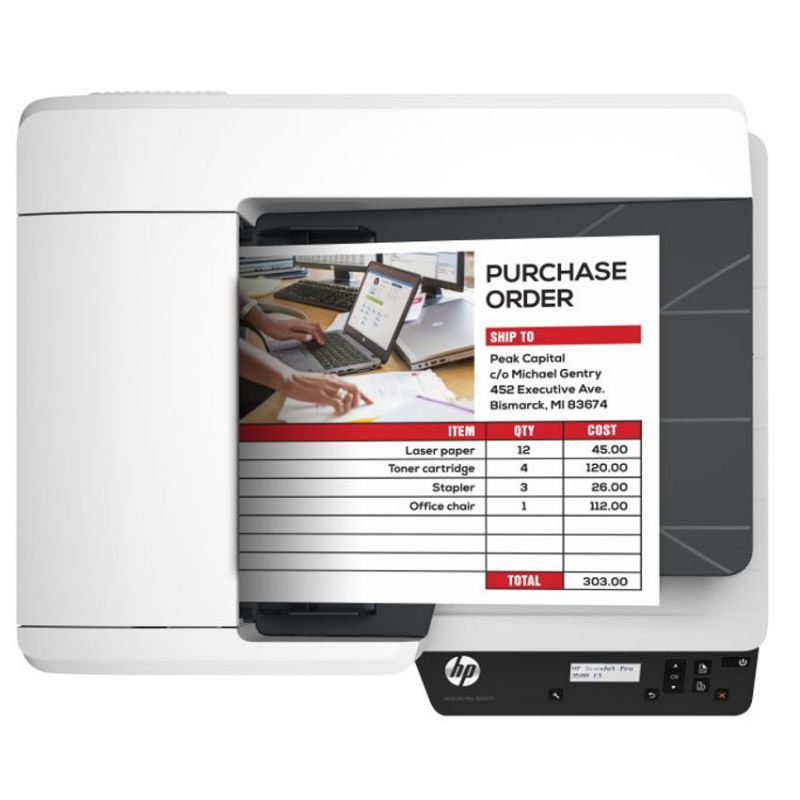 Descripción Escaneo rápido a 25 ppm/50 ipm Escaneo de alta velocidad fiable a hasta 25 páginas/50 imágenes por minuto. Ciclo de trabajo recomendado: 3.000 hojas por día Diseñado para gestionar hasta 3.000 hojas al día. Escaneo a doble cara de una sola pasada Ahorre tiempo y reduzca los residuos con un escaneo a doble cara que capta ambos lados de la página en una sola pasada. Escanee con seguridad Captura todas las páginas y detecta posibles errores, cada vez. Escaneo de forma fácil Defina los perfiles de escaneo y escanee a varios destinos con el software HP Scan incluido. Capture una amplia gama de tipos de documentos Escanee documentos de hasta 21,6 x 309,9 cm (8,5 x 122 pulgadas) a través del ADF (alimentador automático de documentos) y utilice la superficie plana para soportes voluminosos. Escaneo con borde de libro El escaneo con borde de libro evita el texto distorsionado, incluso cerca del lomo de libros y otros materiales encuadernados. Panel de control LCD Realice selecciones y vea los detalles de su trabajo de escaneo en el panel de control LCD. Escaneo de un botón Cree ajustes de escaneo de un botón para las tareas repetitivas. Diseño pequeño y compacto El diseño compacto hace que se pueda acoplar este escáner en espacios reducidos. Reconocimiento óptico de caracteres El software OCR integrado le permite crear archivos con función de búsqueda directamente desde el escáner para que pueda encontrar el documento que necesite, cuando lo necesite. USB 3.0 Los escaneos llegan a su destino a altas velocidades con una conexión USB 3.0.