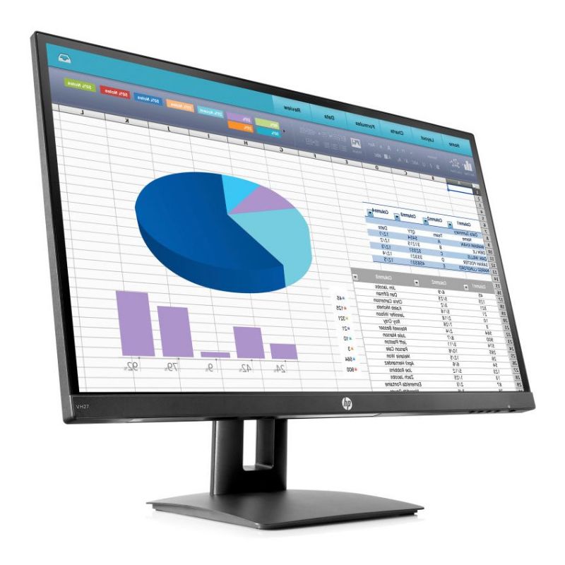 Descripción HP VH27. Diagonal de la pantalla: 68,6 cm (27"), Resolución de la pantalla: 1920 x 1080 Pixeles, Tipo HD: Full HD, Tecnología de visualización: LED, Tiempo de respuesta: 5 ms, Relación de aspecto nativa: 16:9, Ángulo de visión, horizontal: 178°, Ángulo de visión, vertical: 178°. montaje VESA, Ajustes de altura. Color del producto: Negro