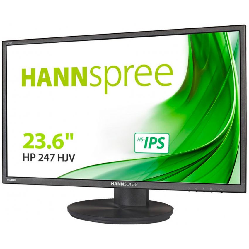 Descripción Hannspree HP247HJV. Diagonal de la pantalla: 59,9 cm (23.6"), Resolución de la pantalla: 1920 x 1080 Pixeles, Tipo HD: Full HD, Tecnología de visualización: LED, Tiempo de respuesta: 8 ms, Relación de aspecto nativa: 16:9, Ángulo de visión, horizontal: 178°, Ángulo de visión, vertical: 178°. Altavoces incorporados. montaje VESA, Ajustes de altura. Color del producto: Negro