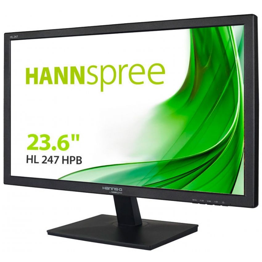 Descripción Hannspree Hanns.G HL 247 HPB. Diagonal de la pantalla: 59,9 cm (23.6"), Resolución de la pantalla: 1920 x 1080 Pixeles, Tipo HD: Full HD, Tecnología de visualización: LCD. Pantalla: LED. Tiempo de respuesta: 5 ms, Relación de aspecto nativa: 16:9, Ángulo de visión, horizontal: 170°, Ángulo de visión, vertical: 160°. Altavoces incorporados. montaje VESA. Color del producto: Negro
