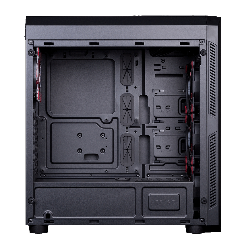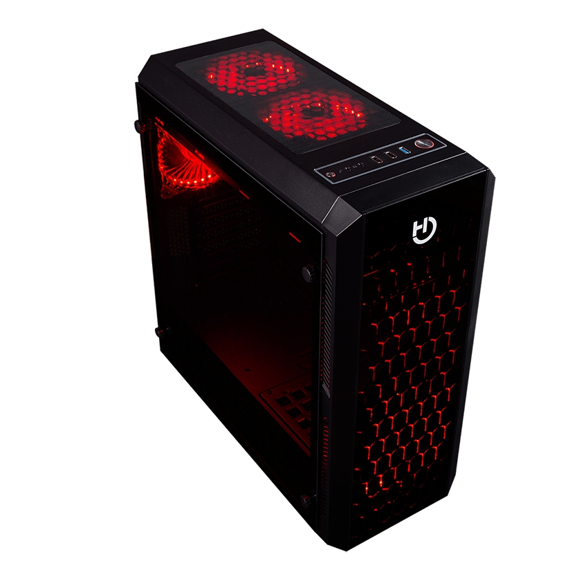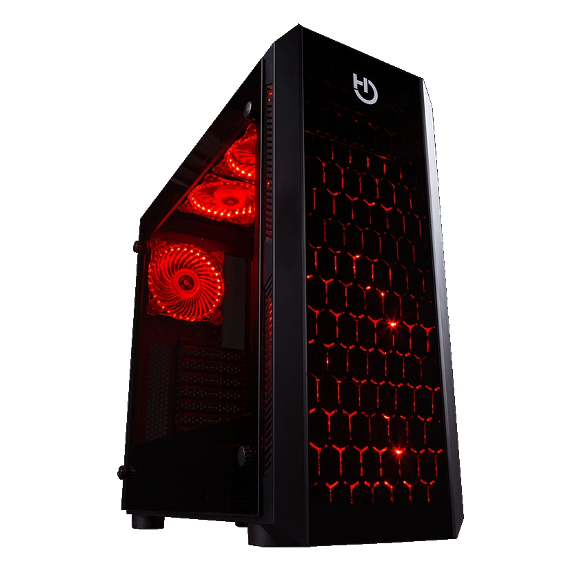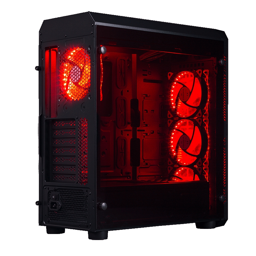 Su espectacular diseño frontal con la potente iluminación de sus ventiladores de 33 leds rojo, robusta fabricación y sus paneles de cristal templado de 4mm son las características ideales para un equipo gamer de alto rendimiento.