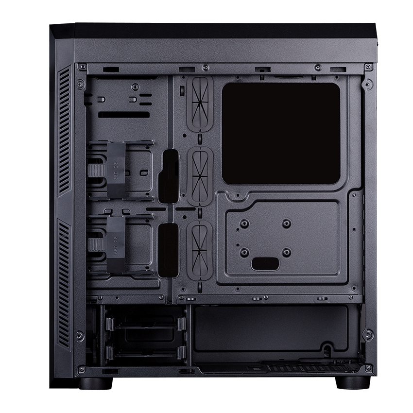 Fabricado en acero laminado de 8mm, paneles de cristal templado de 4mm, potente iluminacion led , un perfecto sistema de refrigeración y una distribución interior diseñada para equipos de alto rendimiento.