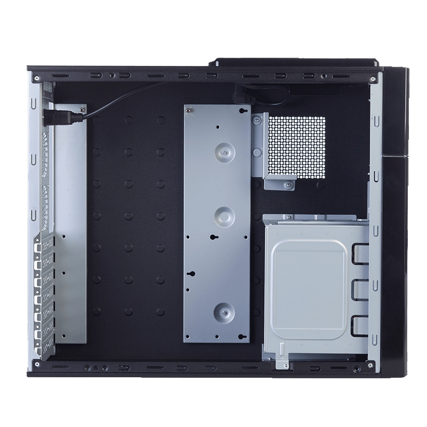El chasis Slim ATX K7 está fabricado con un SECC de 0,6 mm y está lacado en negro arena tanto en su interior como en su exterior.