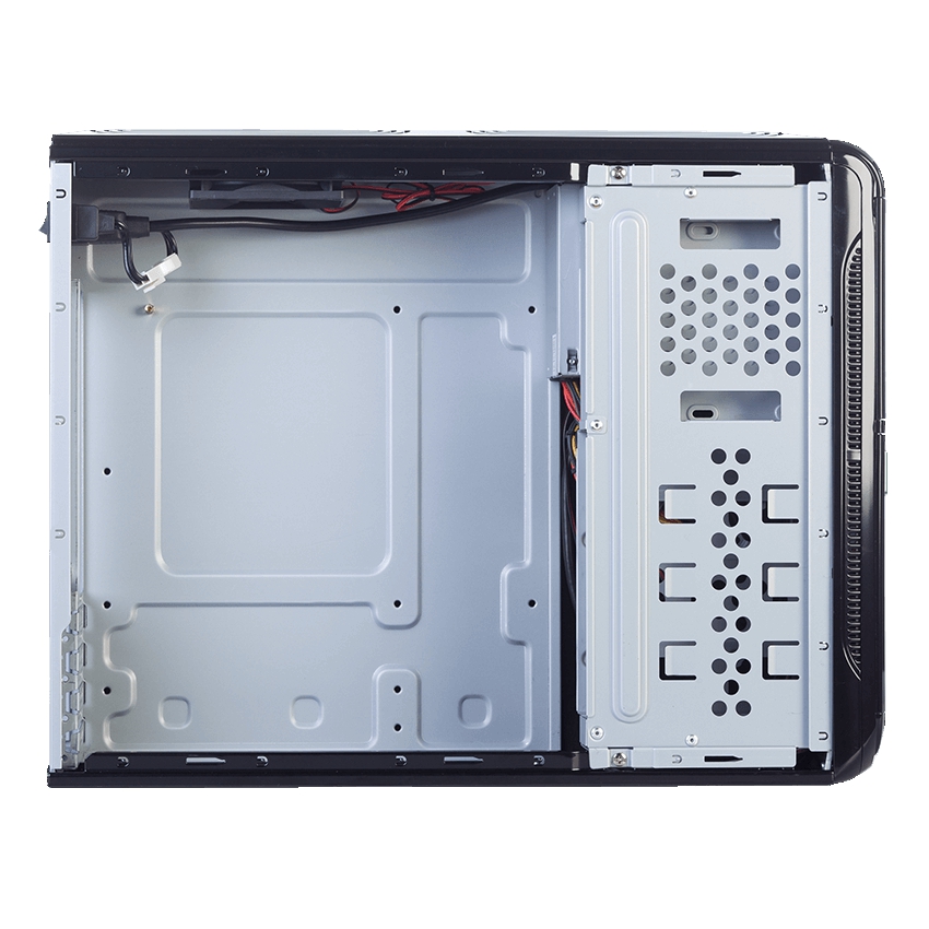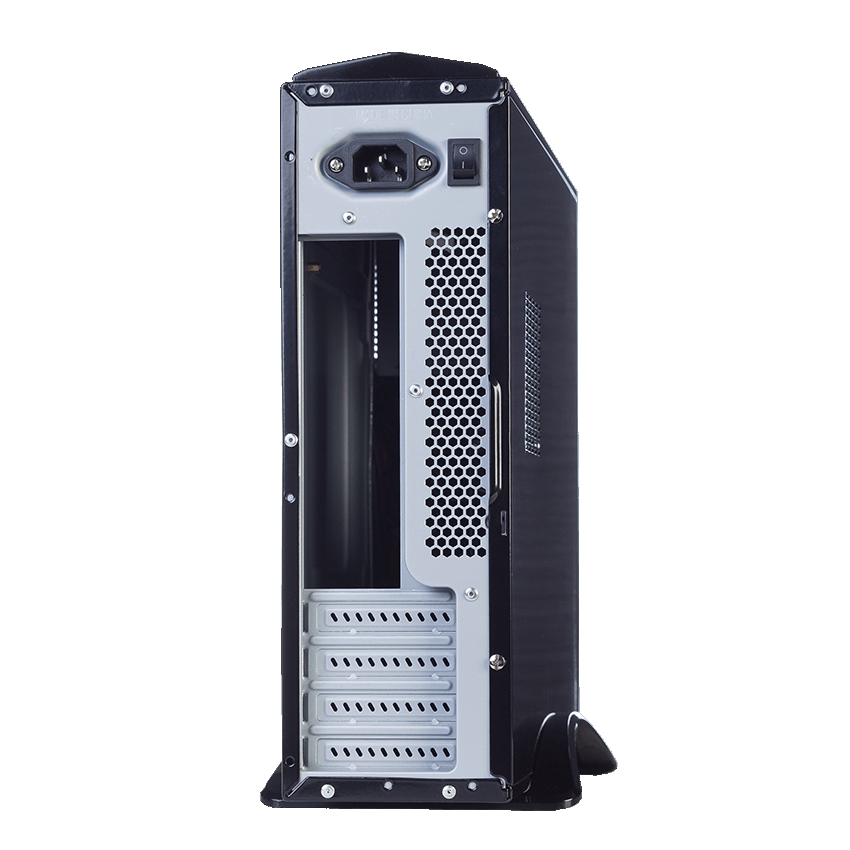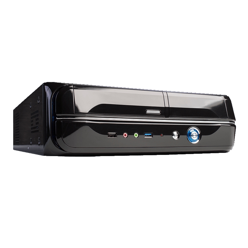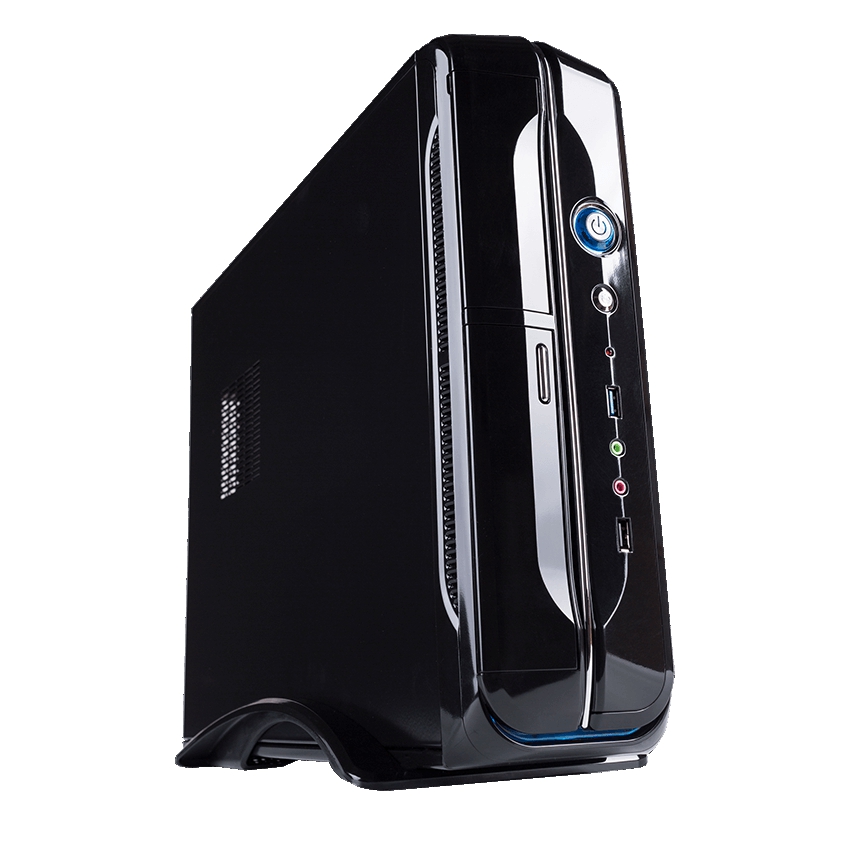 • Chasis Slim Micro ATX fabricado en SECC 0,8mm, Chasis Slim Micro ATX fabricado en SECC 0,8mm, lacado externamente en negro brillante y con puerto frontal USB 3.0. Especificaciones PLACA BASE Micro ATX ALIMENTACIÓN Este chasis incluye de serie fuente de alimentación 450W con ventilador silencioso. DIMENSIONES 330mm x 430mm x 100mm COLOR Negro PESO 5000grs PCI 4 BAHÍAS INTERNAS 1 x 5.25 pulgadas BAHÍAS EXTERNAS 1 x 5.25 pulgadas REFRIGERACIÓN Superior: 80mm MATERIALES Estructura Acero: SECC Panel Frontal: ABS Laterales: SECC CONEXIONES FRONTALES 1 x USB 3.0 OTRAS CARACTERÍSTICAS Colocación horizontal o vertical. CERTIFICADOS CE, RoHs |