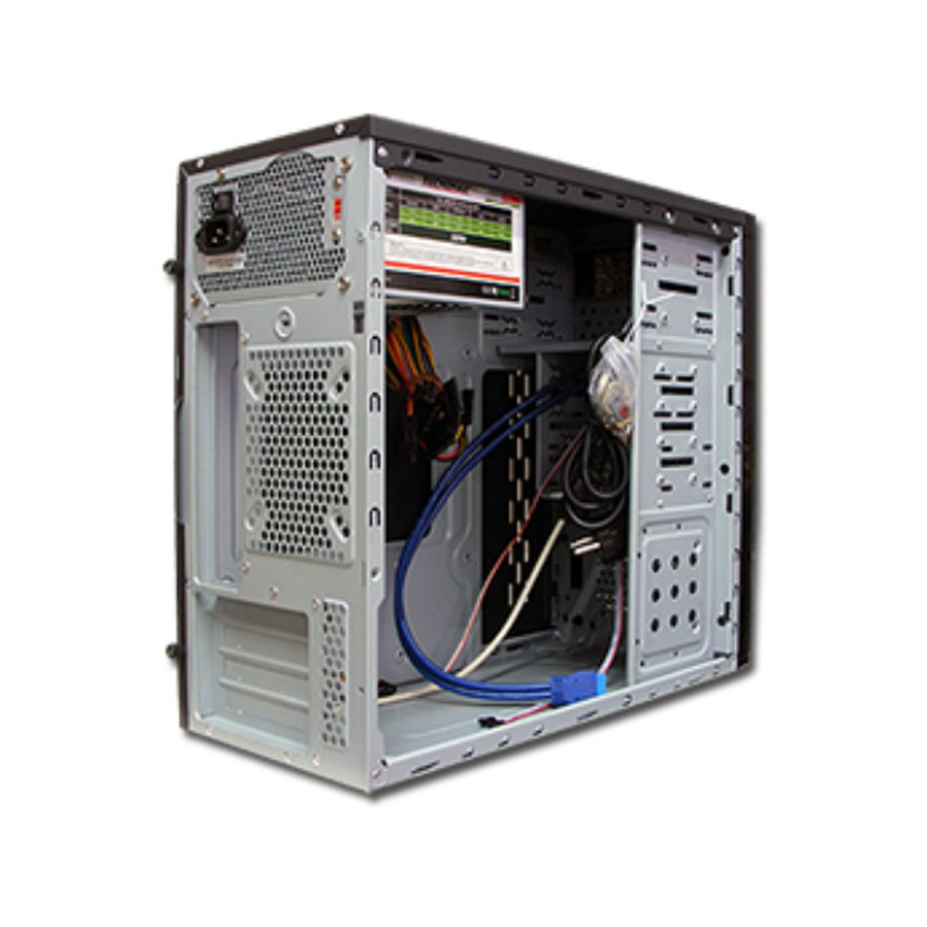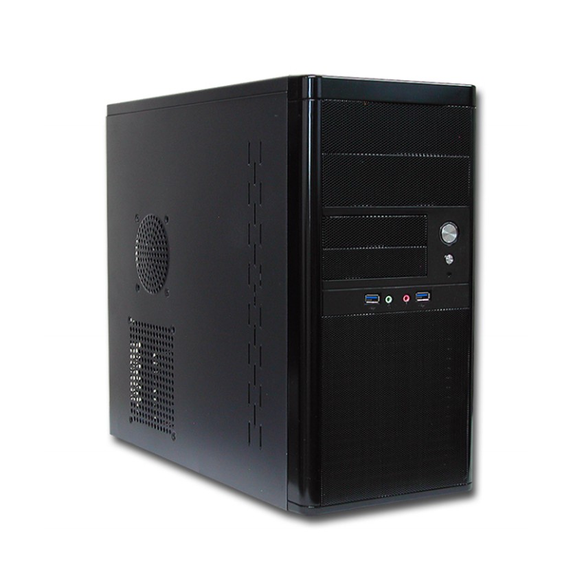 Descripción- Caja Micro ATX en formato Minitorre. - Incluye fuente de alimentación Tecnimax con ventilador de 120xl 20mm silencioso. - Frontal terminado con rejilla metálica. - Soporta placas Micro ATX y Mini ITX. - Con 2 puertos USB 3.0 y HD Audio.EspecificacionesFabricada en acero laminado en frío SECC de 0,6mm de espesor. Fuente de alimentación: Tecnimax ATX 500W 12xl 2 Mod. TMXPTS00S Capacidad para dispositivos: - Bahías de 5.25" externas: 2 - Bahías de 3,5" externas: 2 - Bahías de 3,5" internas: 2 + soporte para HDD adicional Sistema de refrigeración: - Delantero: 1 ventilador de 120xl 20mm, 90x90mm o 80x80mm (opcional) - Trasero: 1 ventilador de 80x80mm o 90x90mm (opcional) - Lateral: 1 ventilador de 120xl 20mm (opcional) Soporta placas base Micro ATX y Mini ITX Ranuras de expansión: 4 Con 2 puertos USB 3.0 y HD Audio en el frontal. Color: Negro.