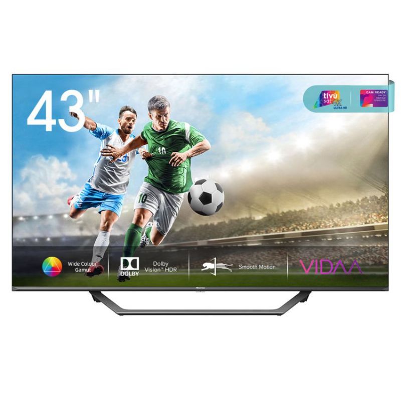Descripción Hisense A7500F 43A7500F. Diagonal de la pantalla: 109,2 cm (43"), Resolución de la pantalla: 3840 x 2160 Pixeles, Tipo HD: 4K Ultra HD, Tecnología de visualización: LED, Forma de la pantalla: Plana, Tipo de retroiluminación LED: Direct-LED. Smart TV. Brillo de pantalla: 300 cd / m², Razón de contraste (típica): 4000:1, Relación de aspecto nativa: 16:9. Formato de señal digital: DVB-C,DVB-S,DVB-S2,DVB-T,DVB-T2. Wifi, Ethernet. Color del producto: Negro