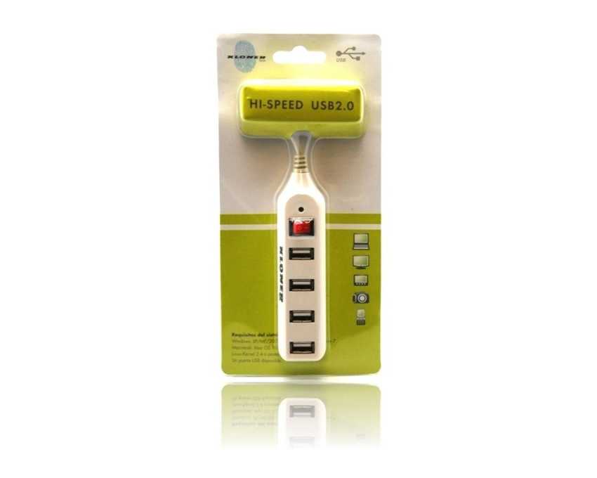 Hub usb, 4 puertos 2.0, blanco con interruptor de seguridad Interfaz 2.0, 4 puerto Hi-Speed,Hasta 500mA por cada puerto , Interruptor de seguridad, Velocidad de trasmisión de hasta 480Mbps, Compatible con Windows 98E/2000/ME/XP/Vista/W7 y MAC.