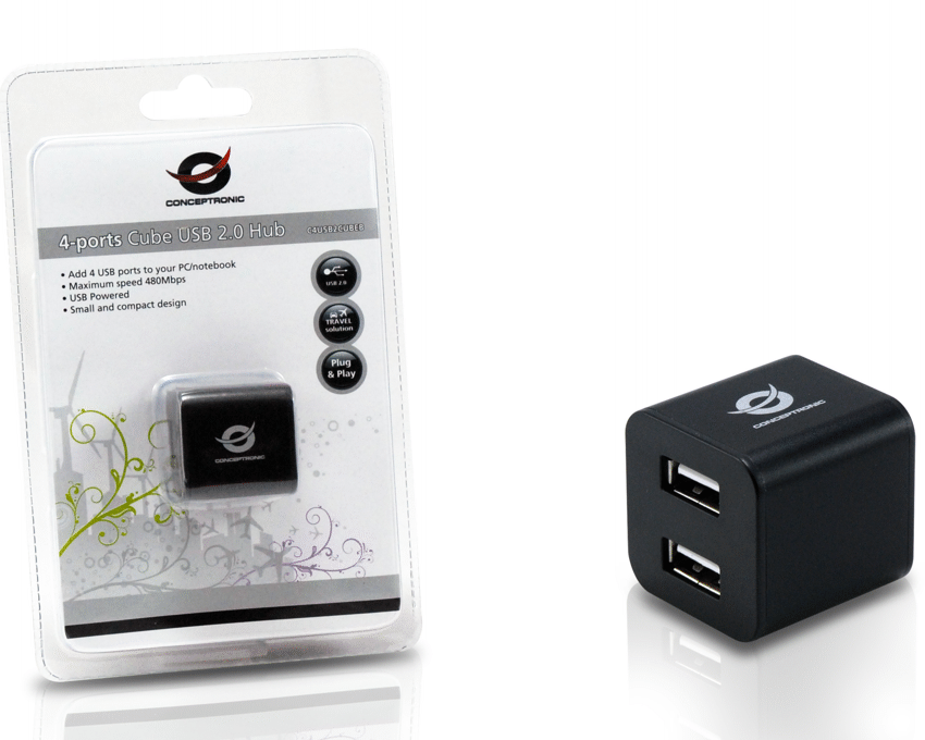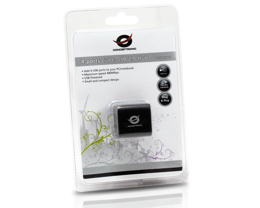 Conexiones / interfaces - 4 puertos USB Fuente de alimentación externa Led indicador no Rendimiento Velocidad máxima admitida 480Mbps dimensiones Largo 31 mm Ancho 32 mm Alto 31 mm Peso 16 gramos